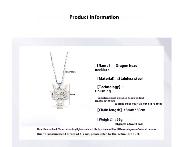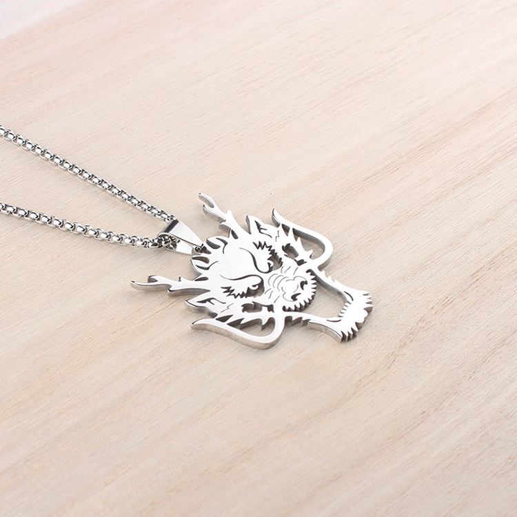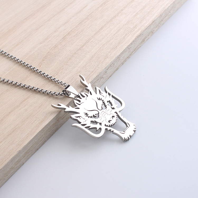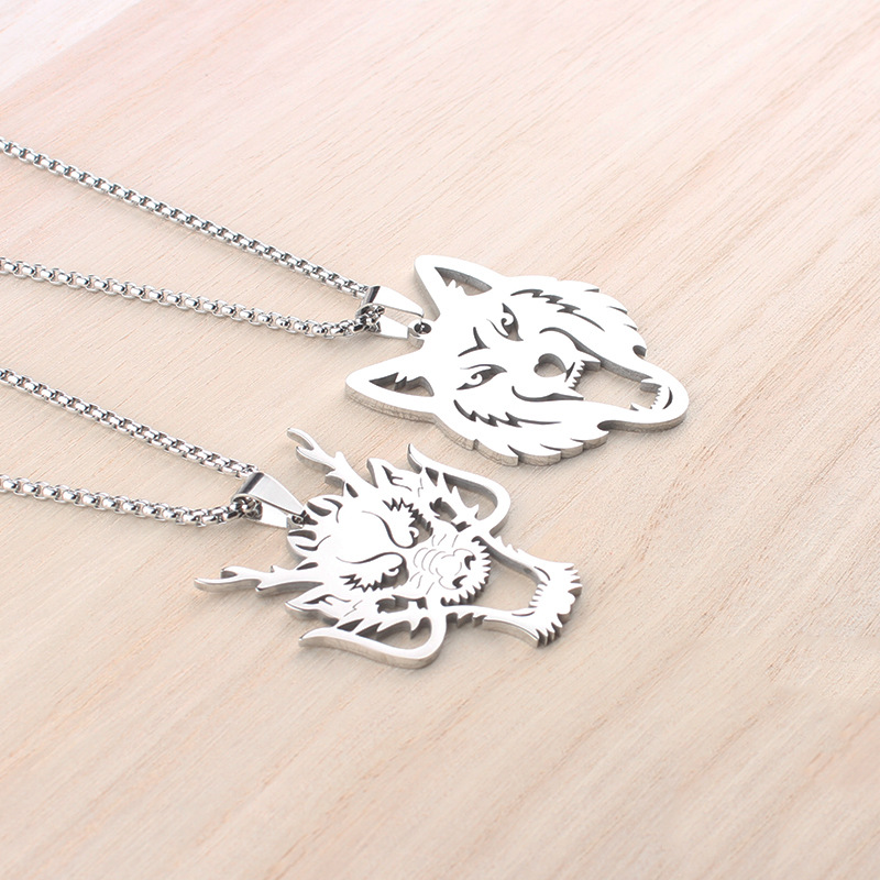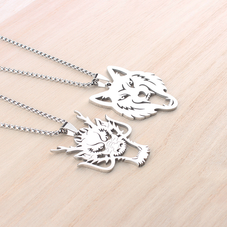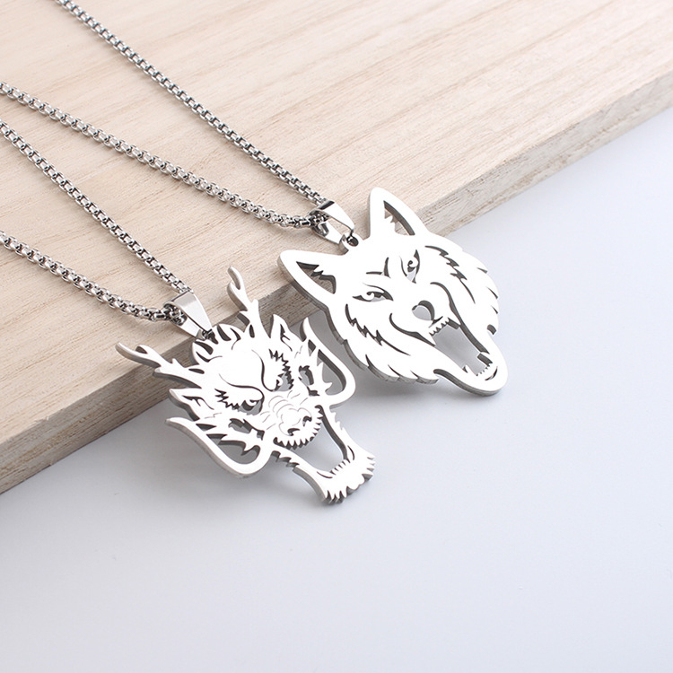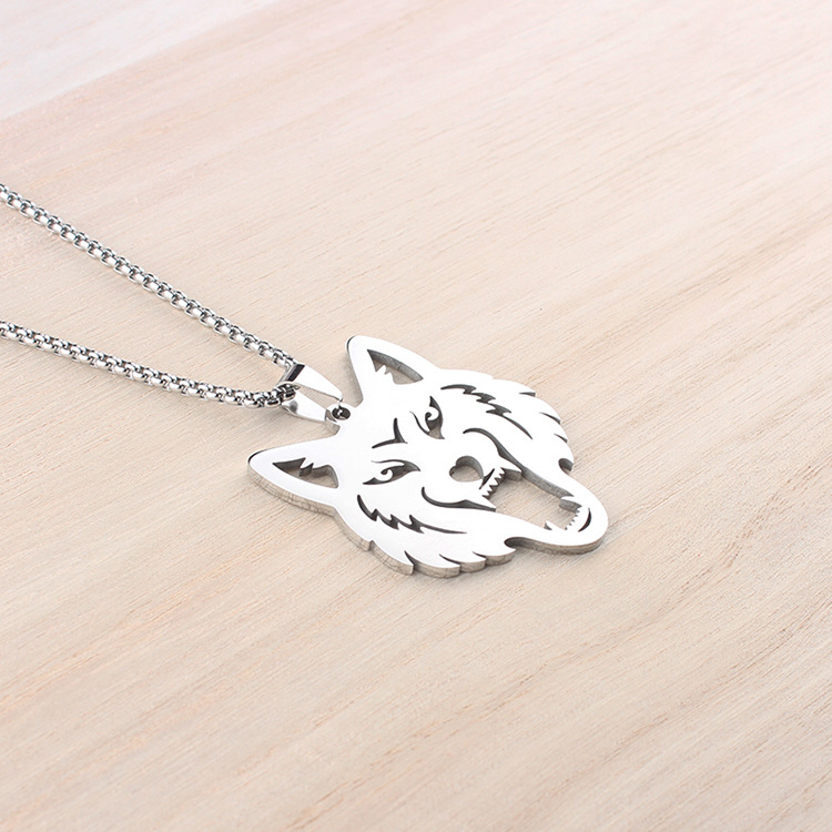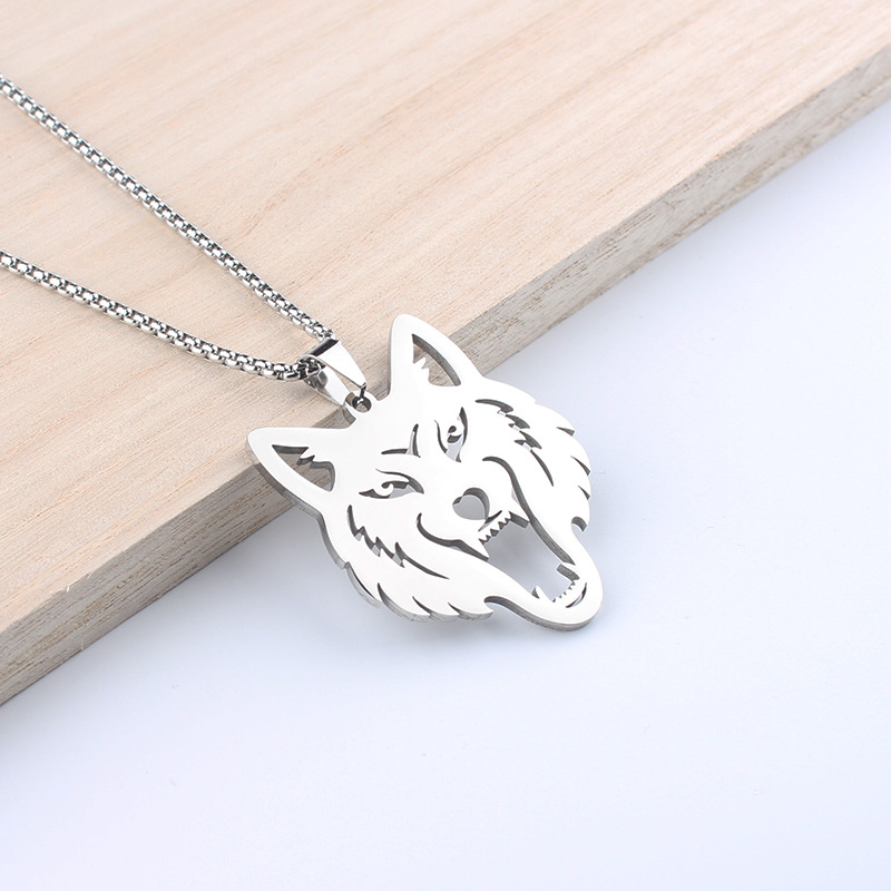 Necklace Hollow Wolf Head Pendant Hip Hop Style Zodiac Stainless Steel