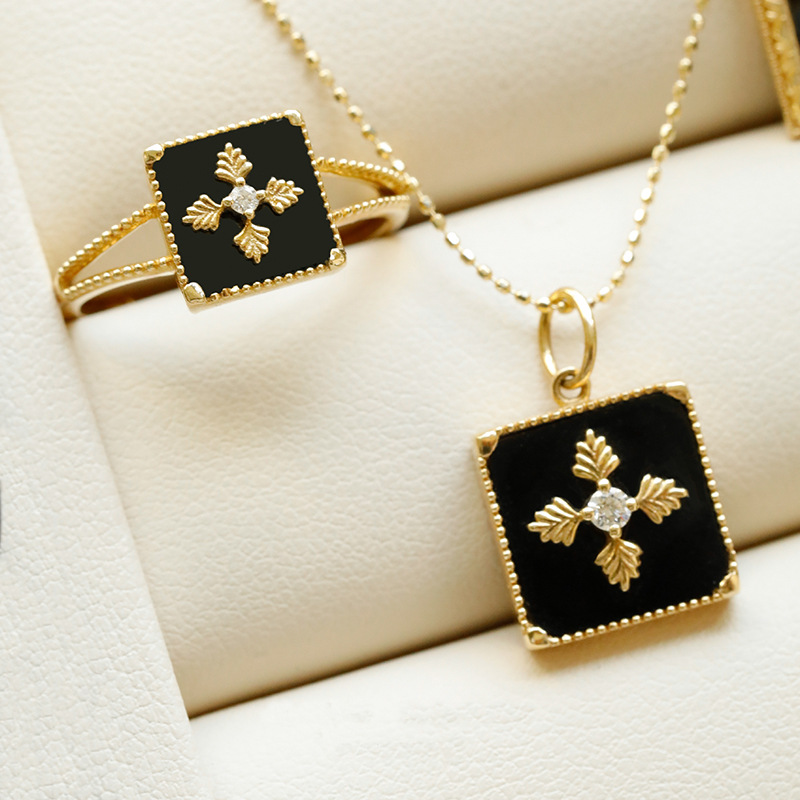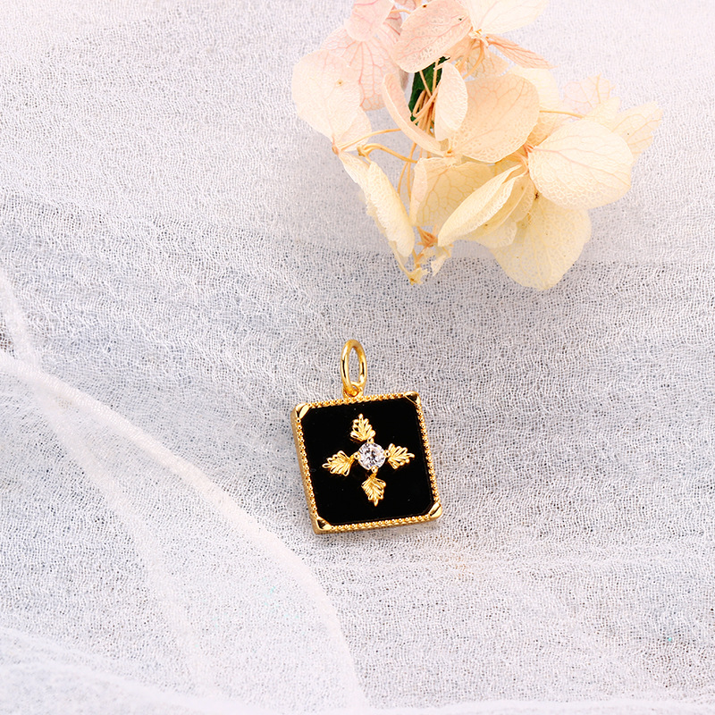 Color: black agate geometric pendant with leaves, with bare chain