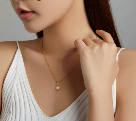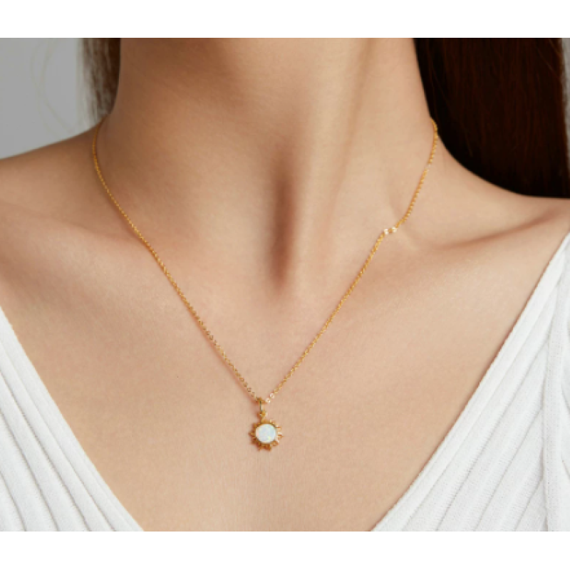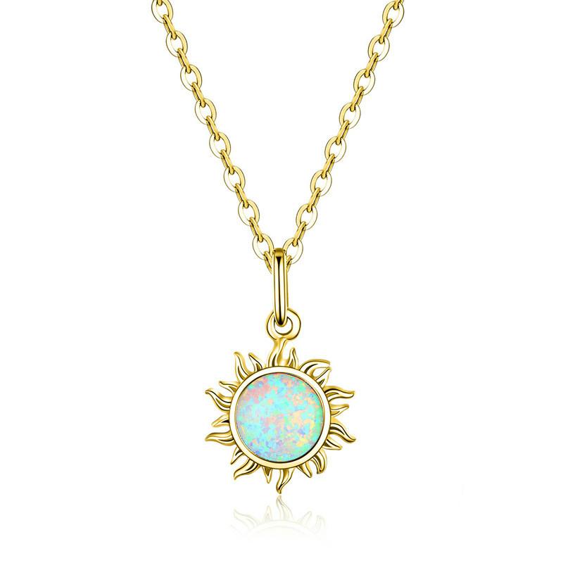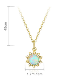 Necklace S925 Sterling Silver Small Sun Necklace Fashion Trend Blue Opal Pendant