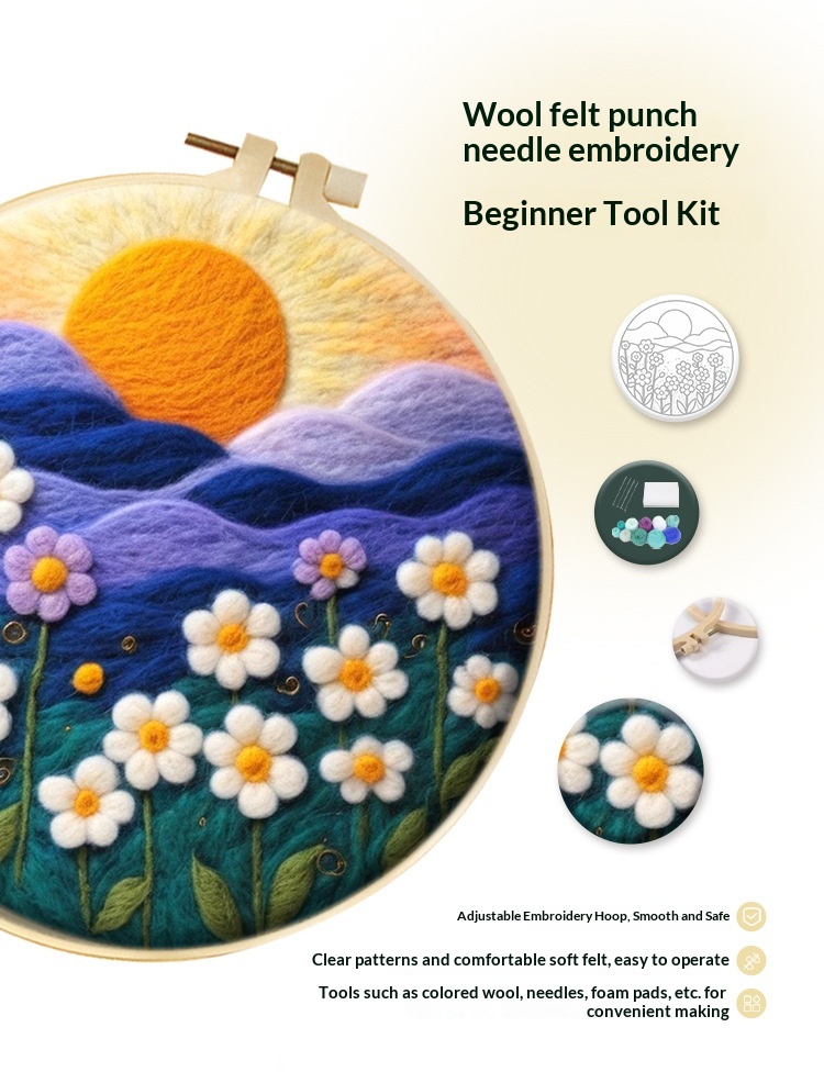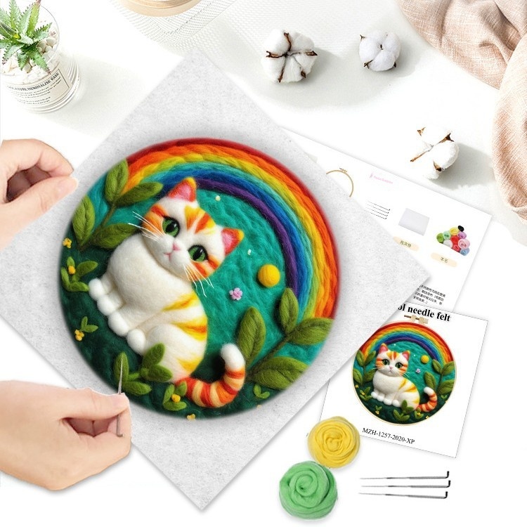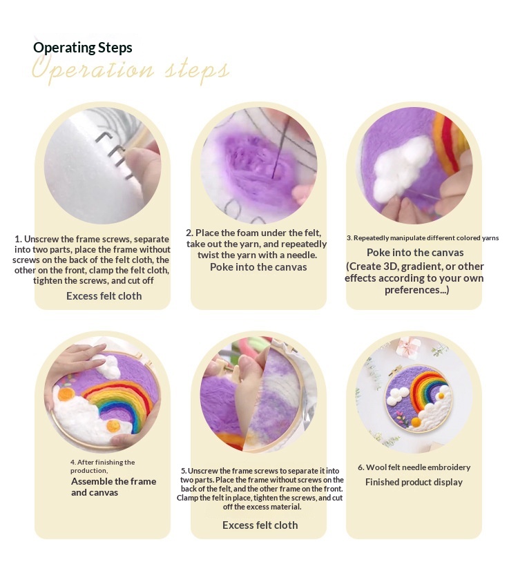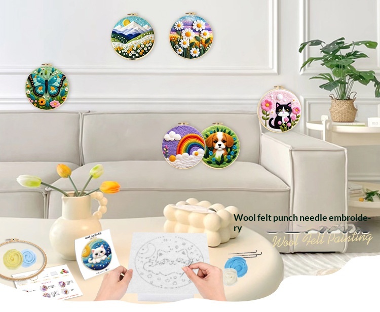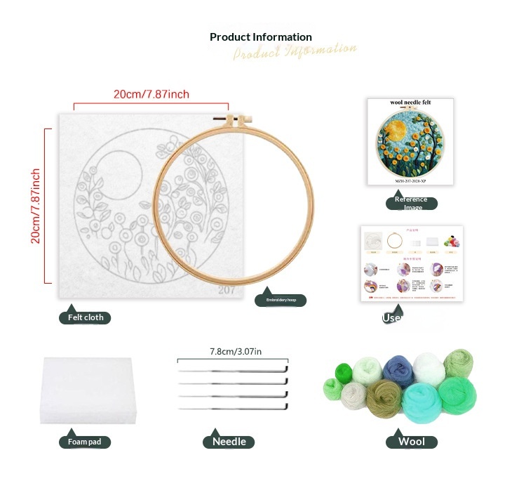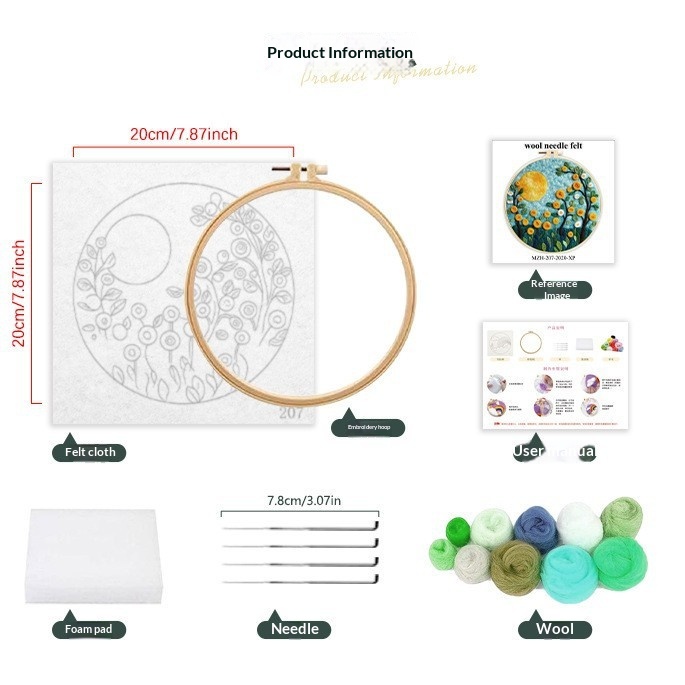 Size: Felt embroidery painting, 20x20 cm (unfinished, includes embroidery hoop), packaged in an OPP bag