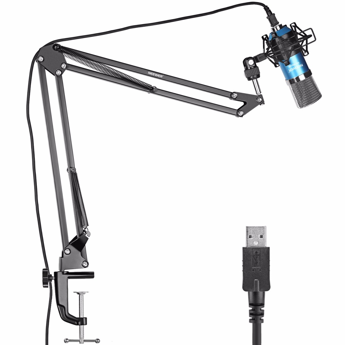 NW-35 Adjustable Recording Microphone Suspension Scissor Arm Stand withMounting Clamp: Double-braced arms equipped with super-strong spring, made ofall steel construction, sturdy and durable; The adjustable arms can be fold upand easy for you to carry around; the mounting clamp can attach to tables,desks, shelves, counters, etc; Extend up to 25.98 inches/66 centimeters.