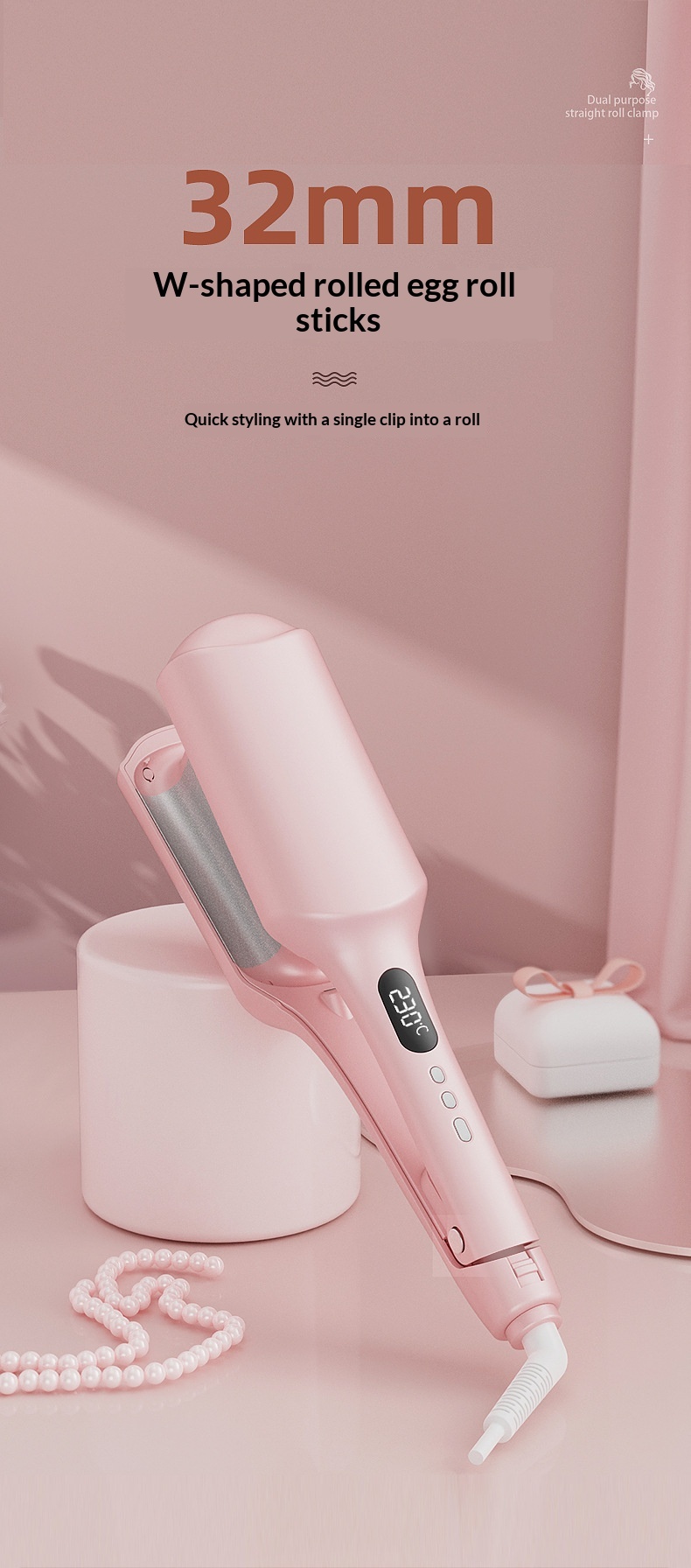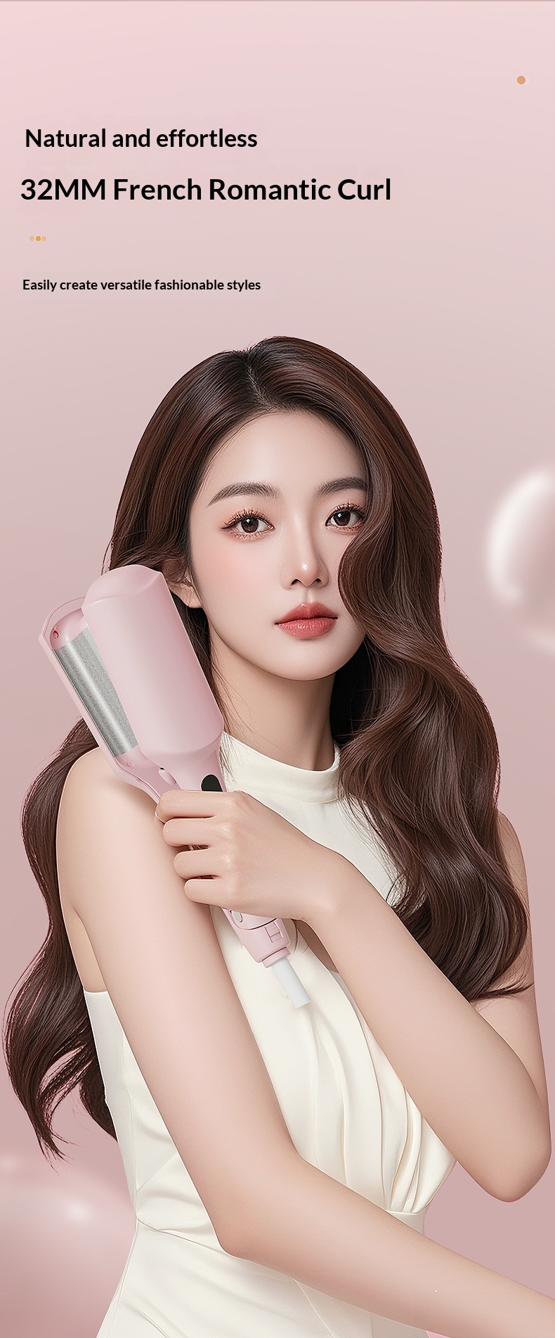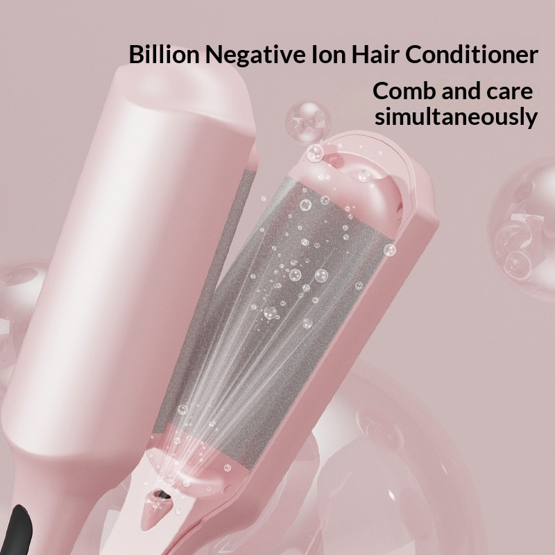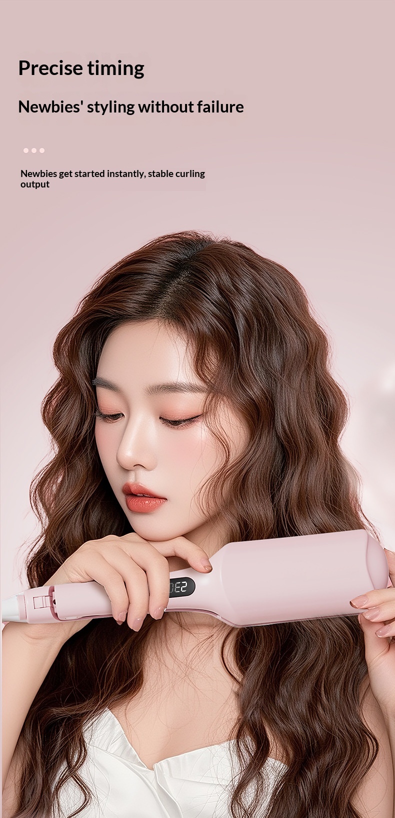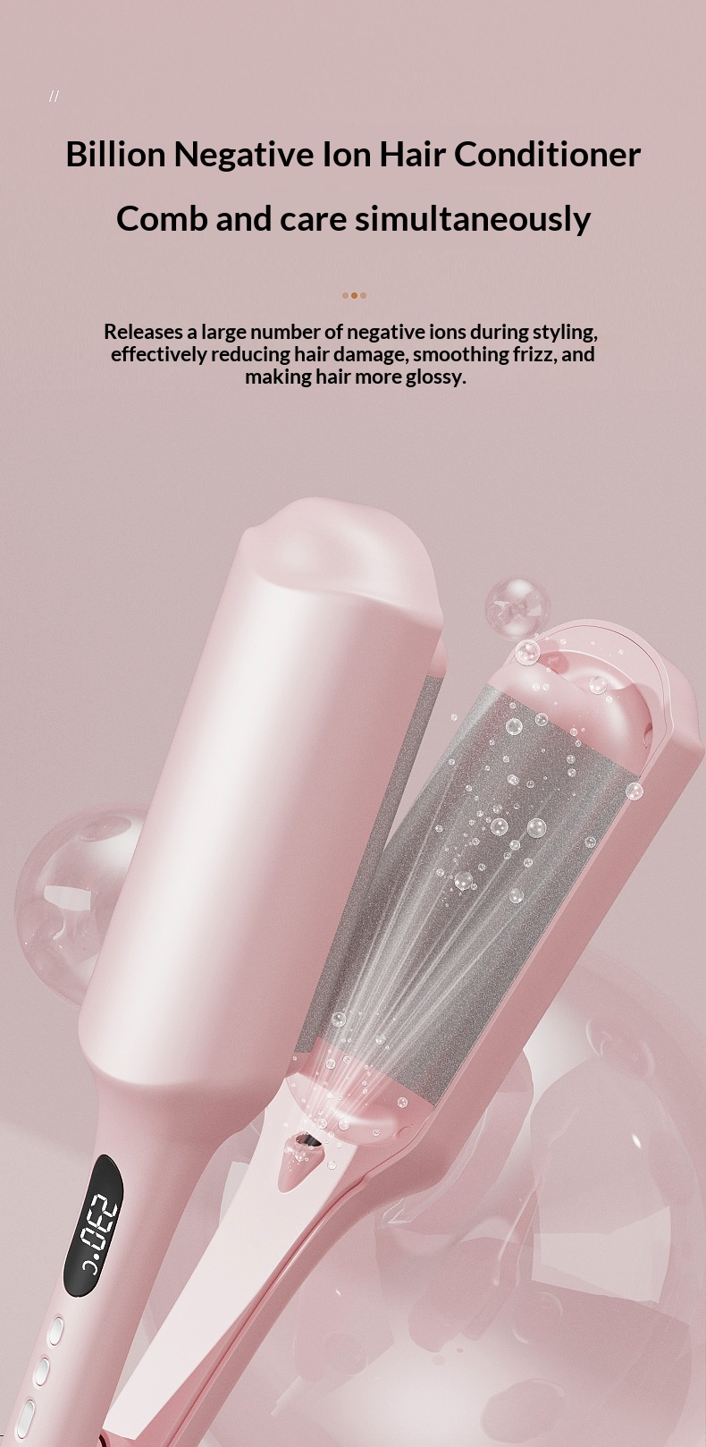 Negative-ion Hair Curling Iron W-shaped Wave Curler Beeping Timer Hair Styler