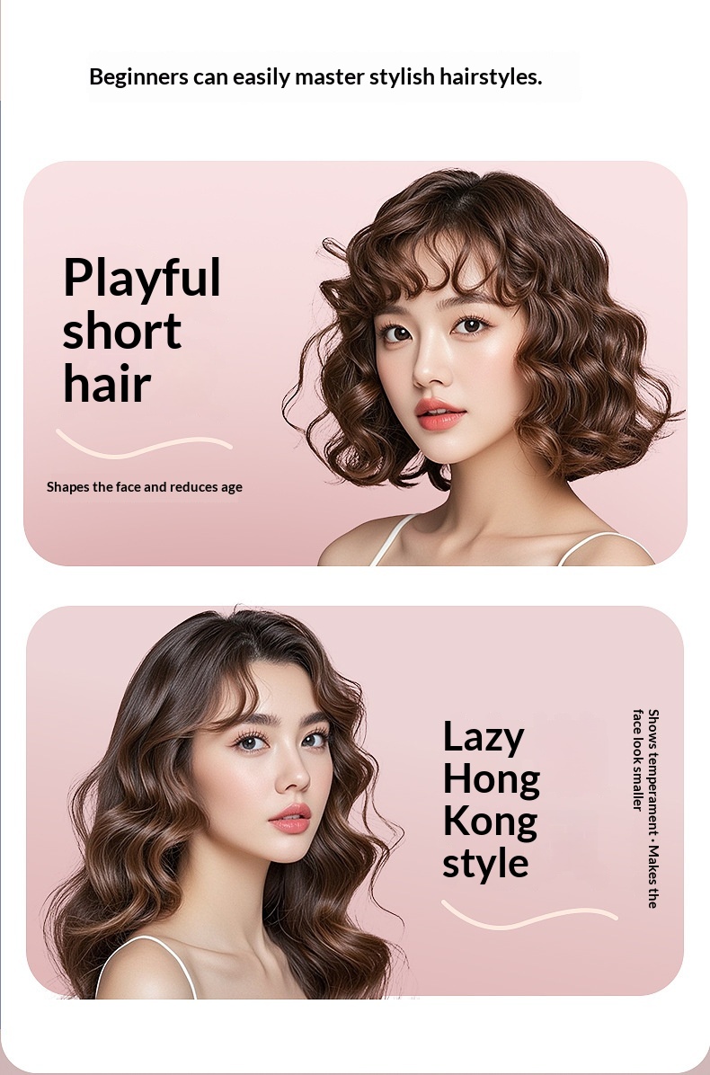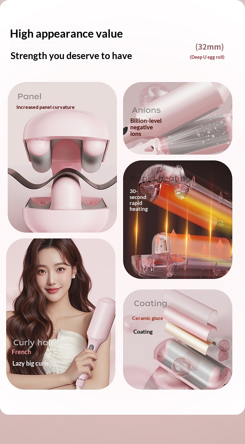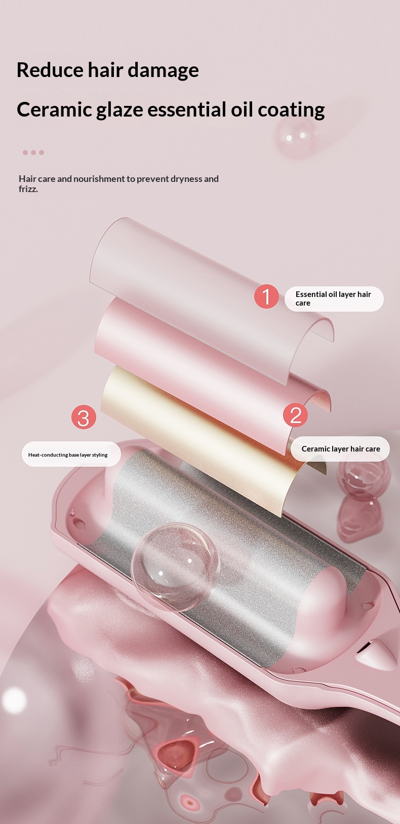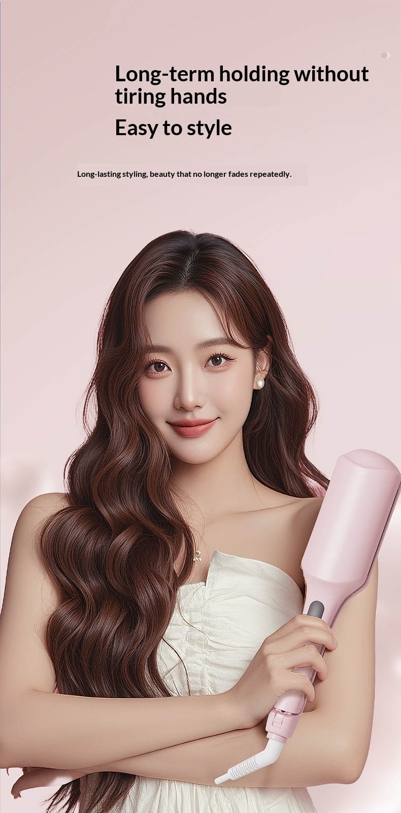Negative-ion Hair Curling Iron W-shaped Wave Curler Beeping Timer Hair Styler