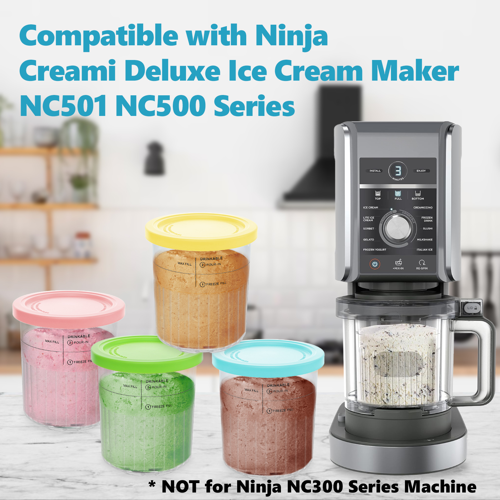 100% COMPATIBILITY: The onset of summer calls for delicious, chilled sweet treats, with ice creams being the most popular. If you're looking for extra ice cream tubs compatible with Ninja Creami Deluxe, our ice cream containers are the perfect replacement for Ninja Creami Deluxe NC501UK, NC500 series ice cream makers. (NOTE: Not for NC300 or NC299AMZ series.)
