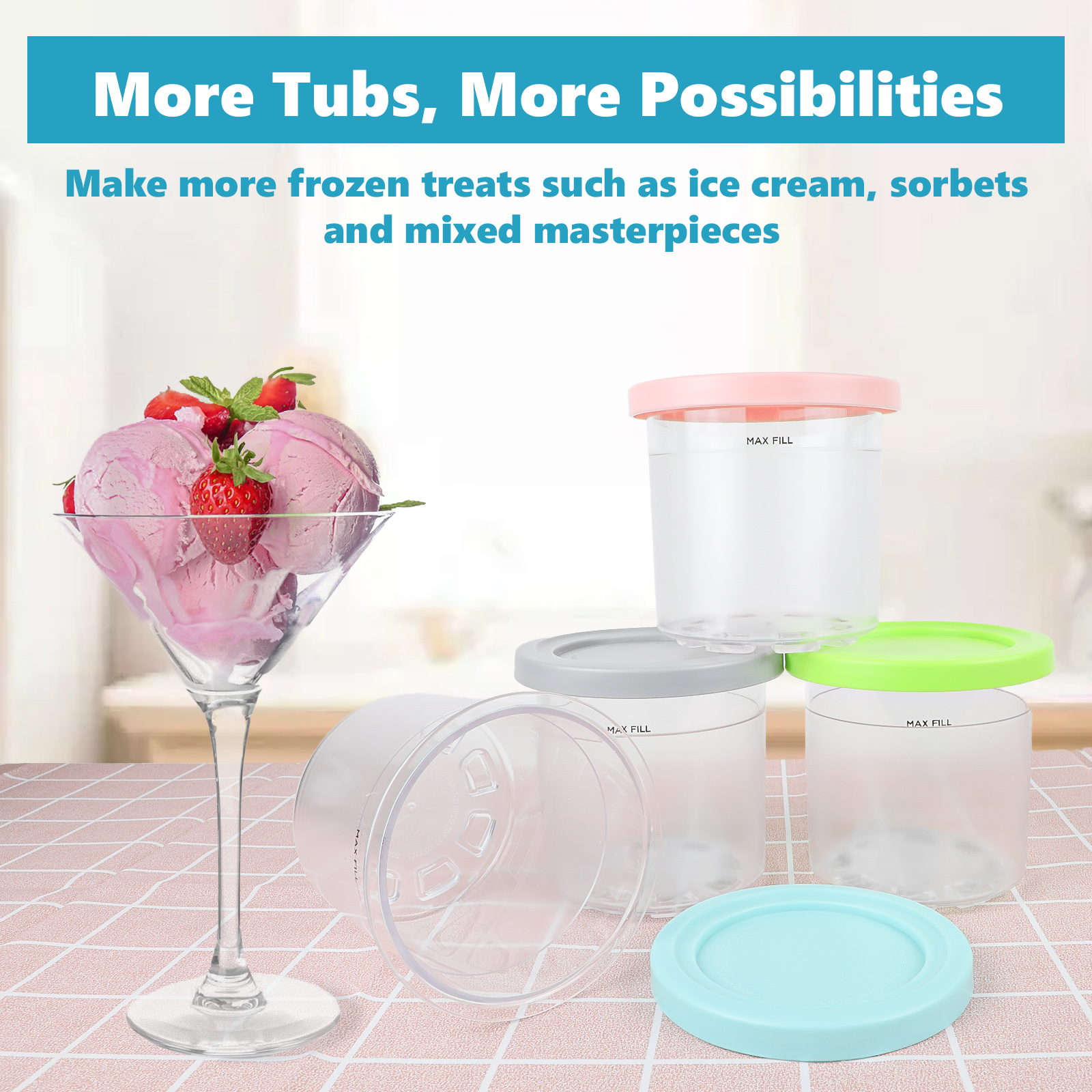 Nepfaivy Ice Cream Tubs For Ninja CREAMi - 4 Pack Creami Tubs Compatible With Ninja CREAMi Ice Cream Maker NC300UK NC300UKCP NC299AMZ, BPA-Free & Dishwasher Safe Ice Cream Containers With Color Lids