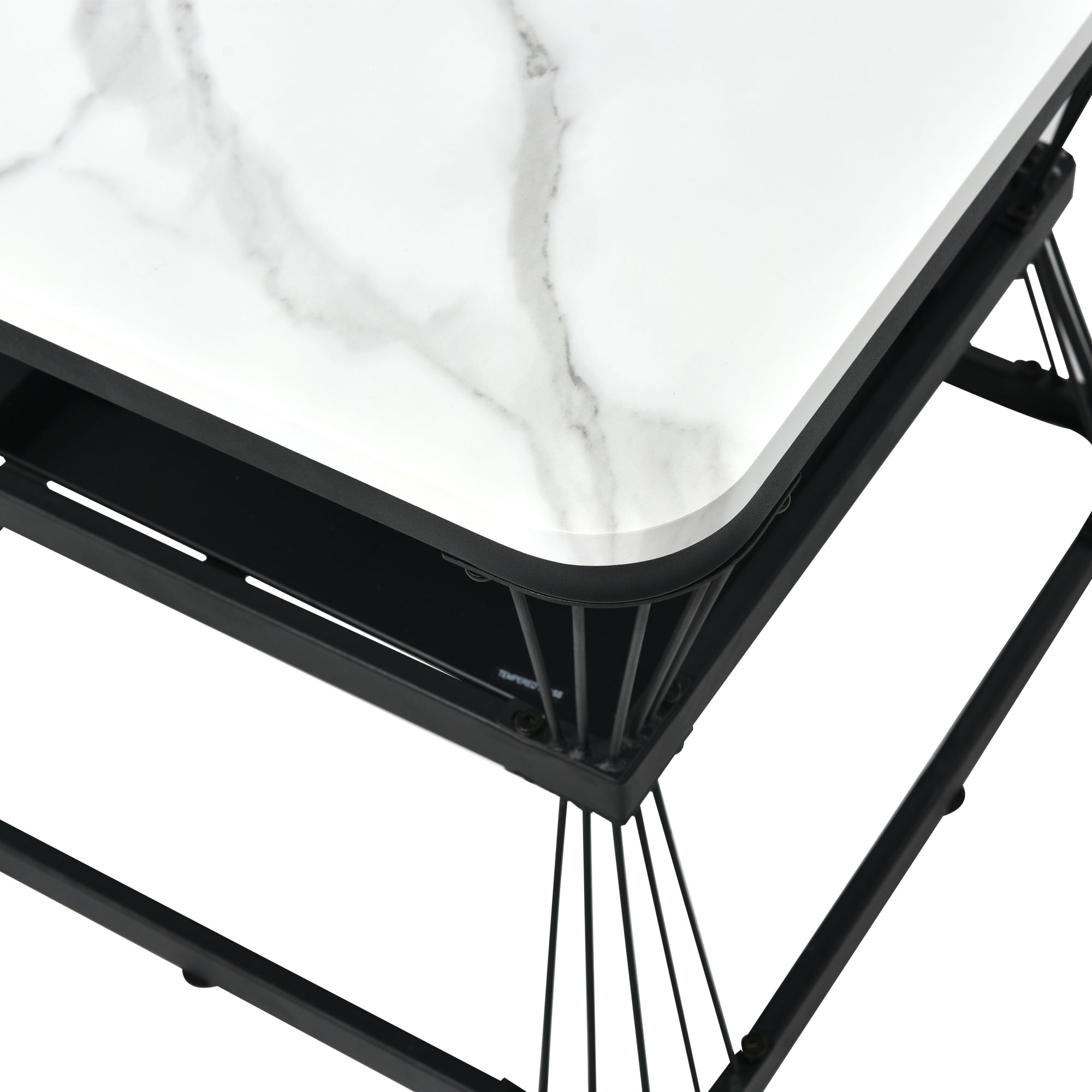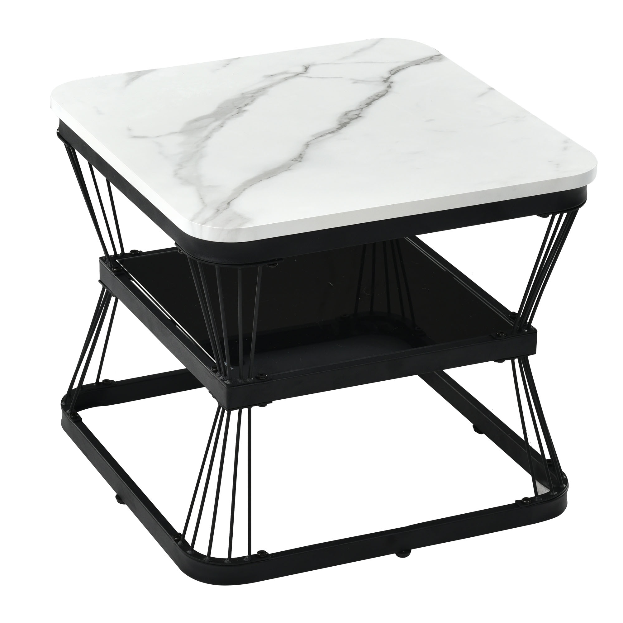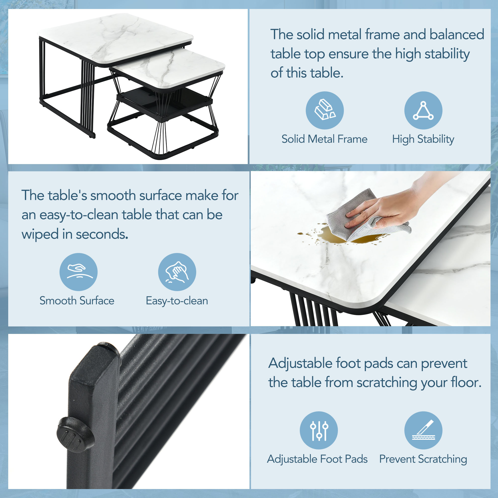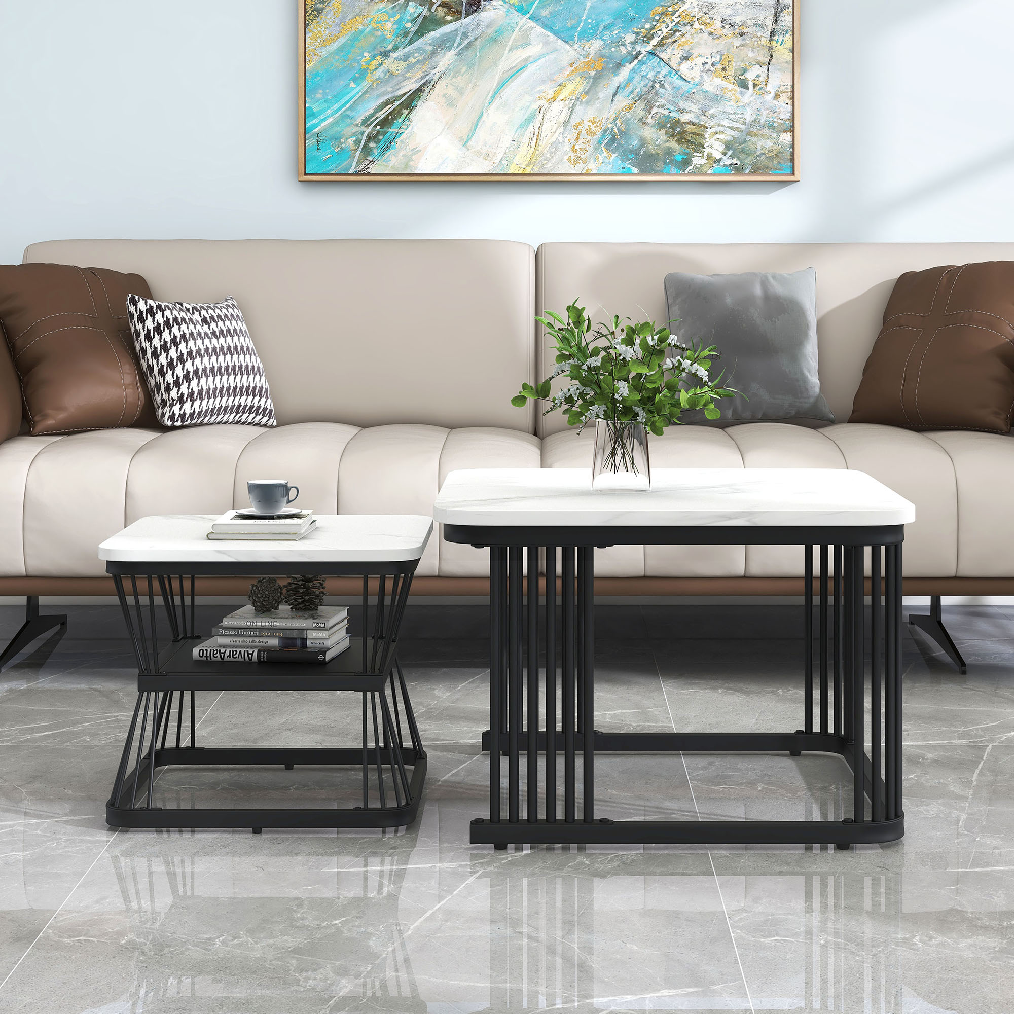 Product Name:Nest of 2 Tables Square Coffee Table Coffee Table Set Nesting Sofa Table Multi-functional End Side Table Nesting Tables with Black Metal Frame Legs and Marble Pattern White Top for Living Room Home