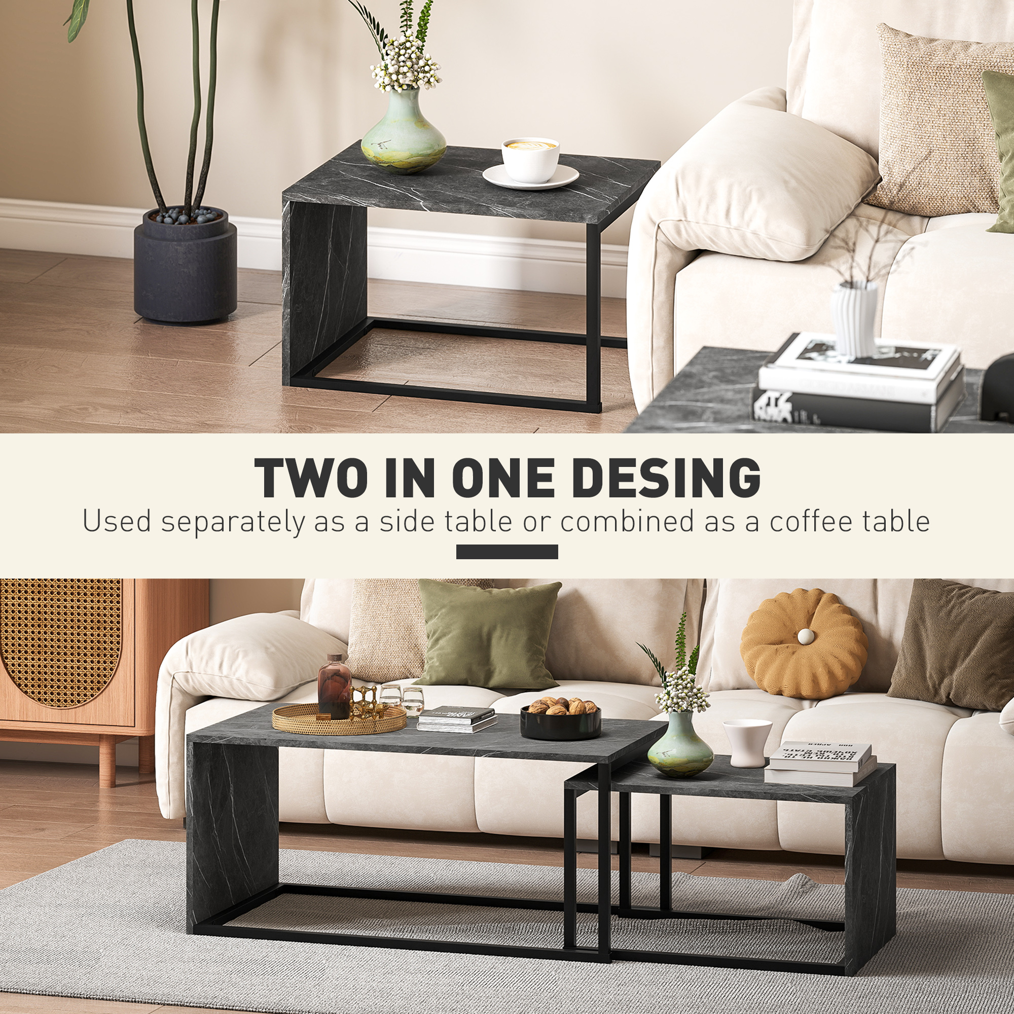 Add chic, modern style and practical function to your home with nest of tables. Each piece can be used separately as a side table in the bedroom, a reading table in the study, or combined as a stylish coffee table in the living room. The elegant design adds a visual boost to any space, while the particle board construction ensures long-lasting use. Enjoy comfort, versatility and charm—brought to you by nesting coffee tables.