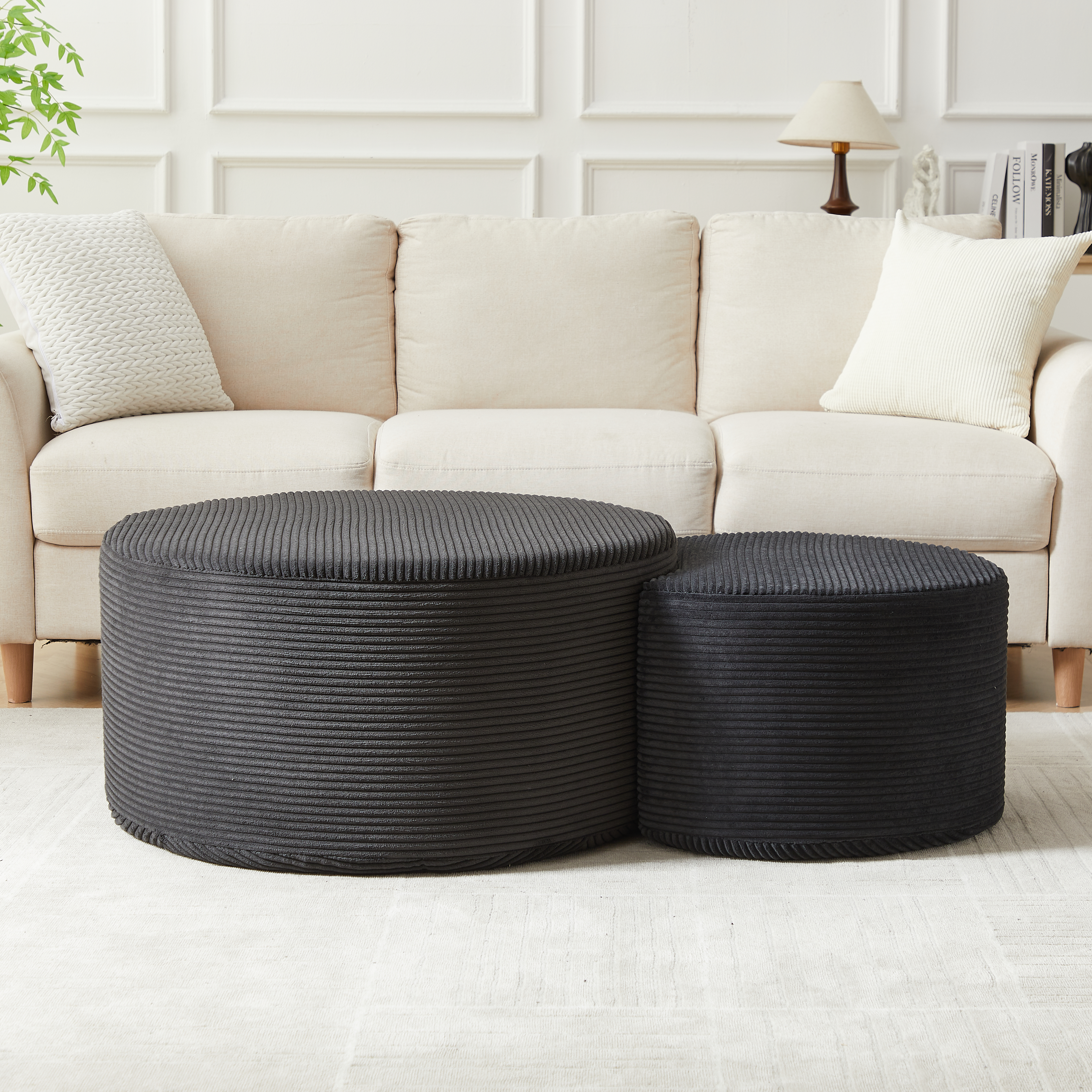 Product Name:Nesting Coffee Table Set of 2,Upholstered Round Coffee Tables Set of 2 for Living Room, Modern Foam Round Coffee Table Side Table End Table Ottoman, No Assembly