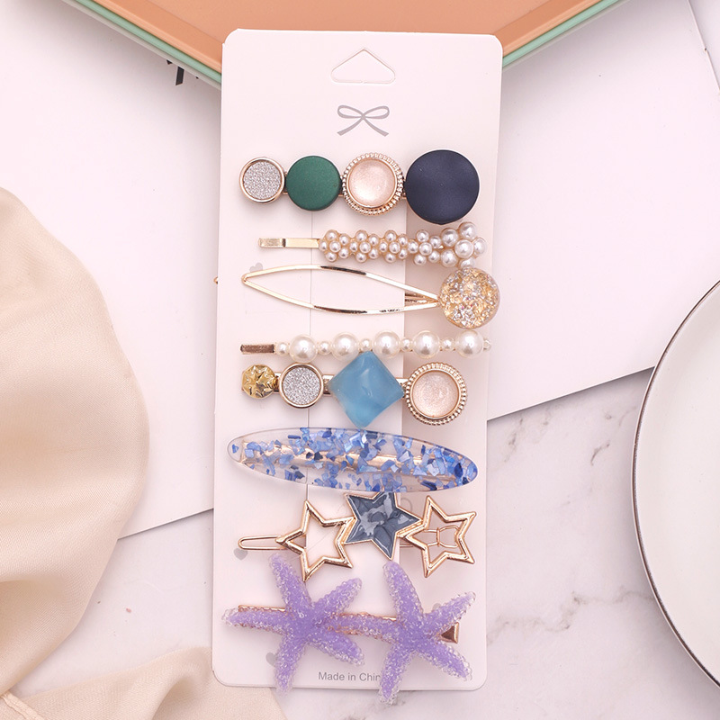 Material: AlloyStyle: Japanese and KoreanStyle: Women'sModeling: geometricProcessing technology: manualHairpin classification: duckbill clip