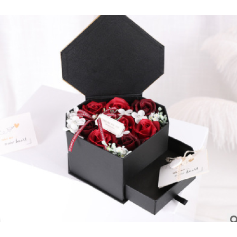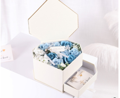 Net celebrity hot style heart-shaped drawer soap flower gift box for girlfriend birthday gift creative collocation card masonry box