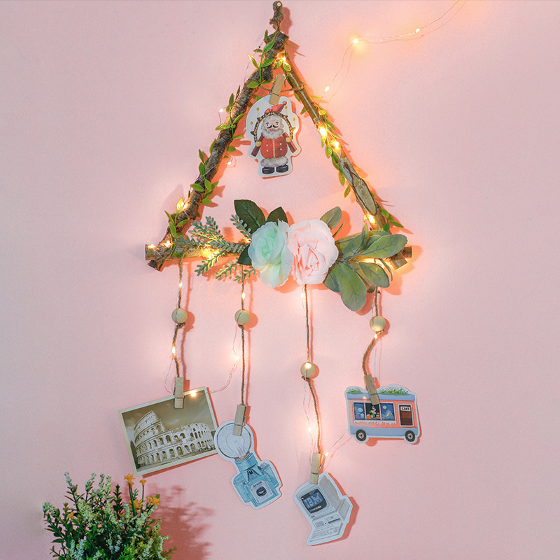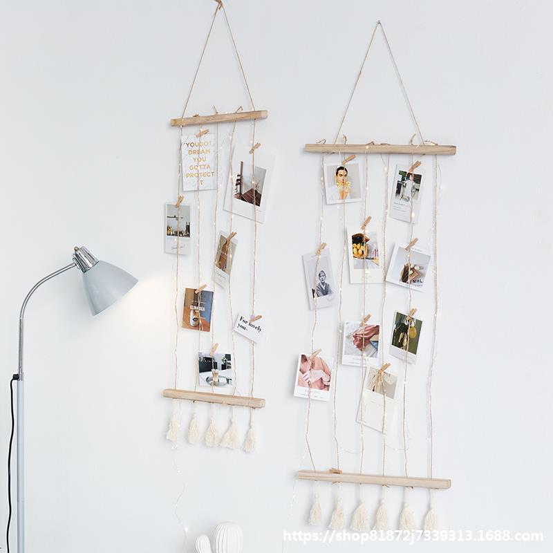 Product Name: wooden stick, hemp rope, tassel, photo clip, wall hanging