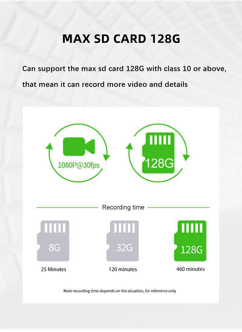 Functions: reversing image, motion detection, loop video, collision reaction, front and back video