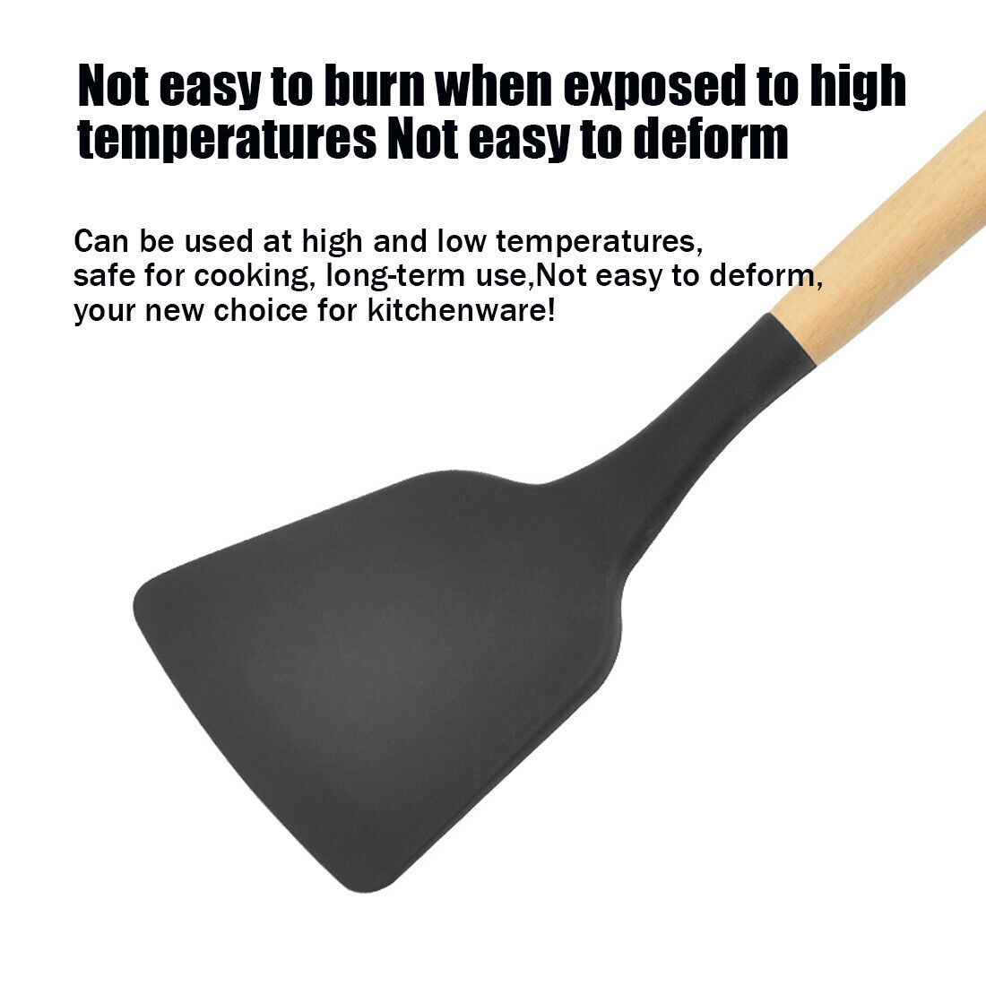 【 Non Corrosive and Durable】 The Silicone Cooking Utensils consist of two parts, wooden handle and the premium silicone tips, designed to not melt and bend like plastic utensils,