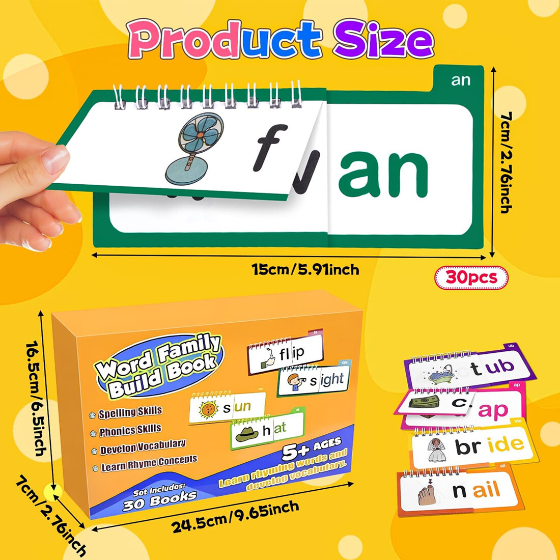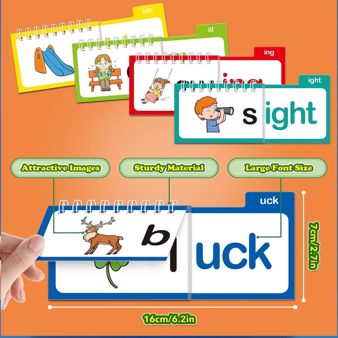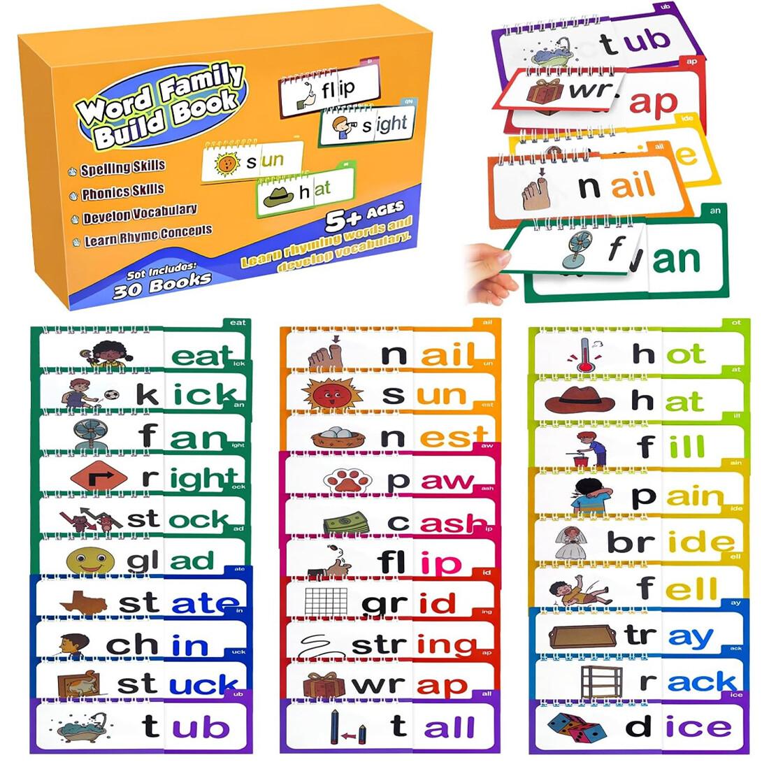 1. A selection of 30 rhyming flip books, combined with word family flash cards, help children easily master language rhythm and vocabulary associations, and stimulate reading interest.