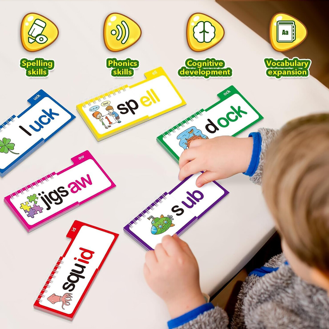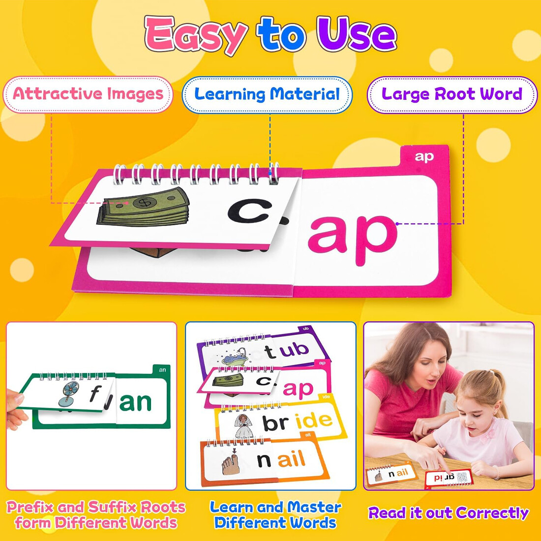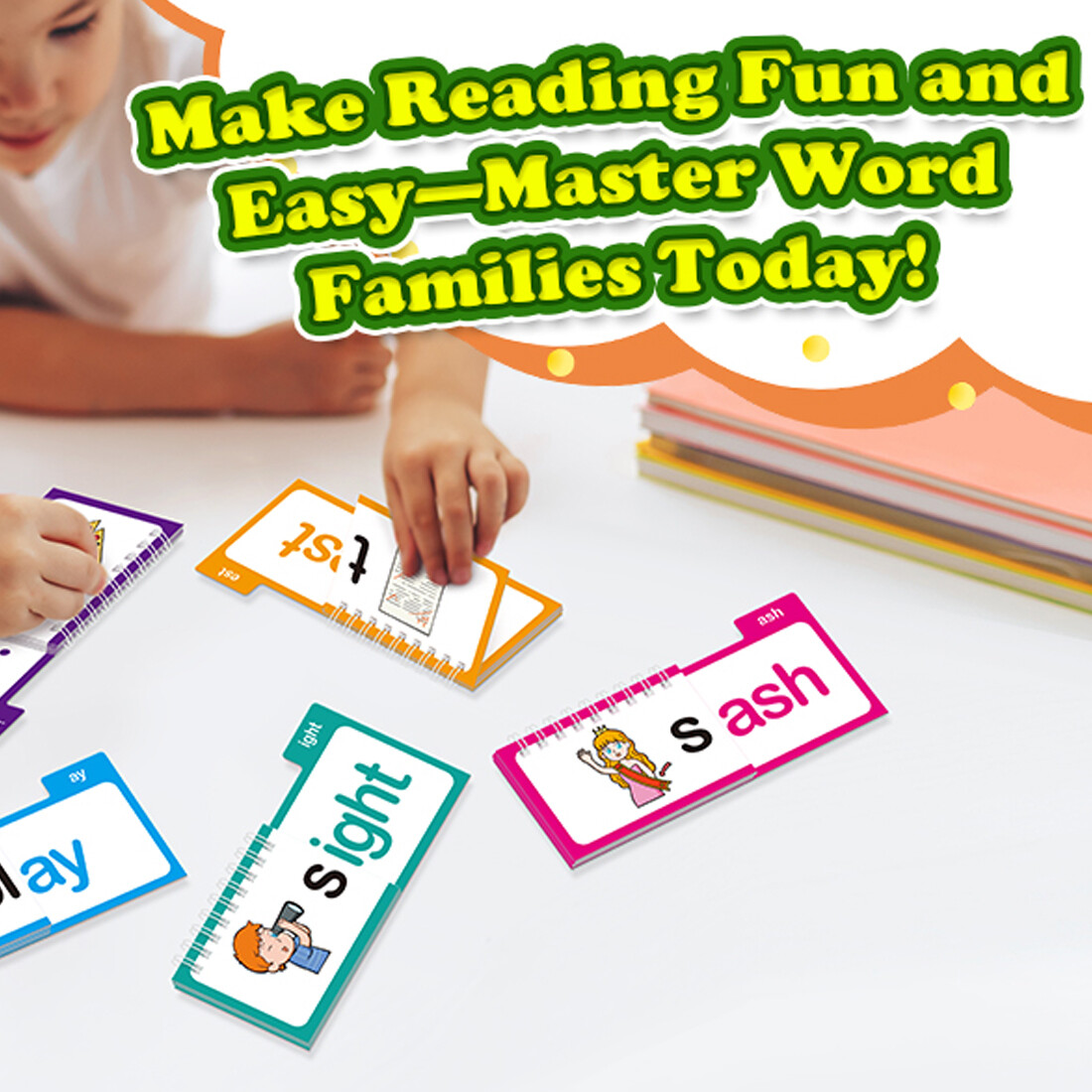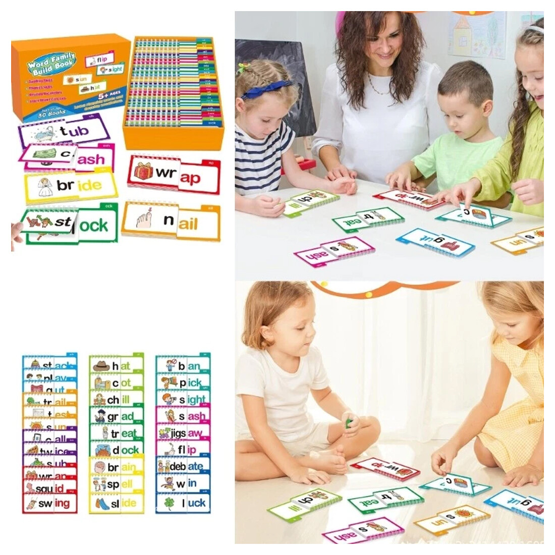 1. A selection of 30 rhyming flip books, combined with word family flash cards, help children easily master language rhythm and vocabulary associations, and stimulate reading interest.