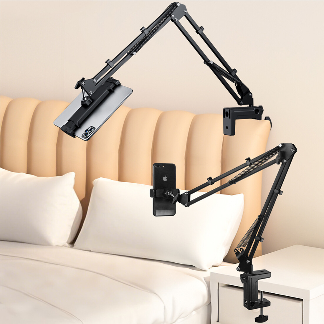 PERFECT FOR LAZY DAYS & NIGHTS - This long arm holder allows you to hold either your smart phone or Tablet exactly where you want it. You can attach it easily to your bed head or desk and position your device perfectly, watch your favourite shows or movies in total comfort.