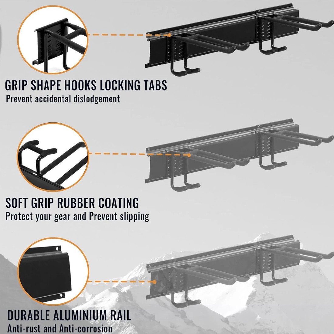 *EASY INSTALLATION: Transform your garage effortlessly with our user-friendly tool organizer. Pre-drilled holes and included mounting hardware make installation a breeze. The adjustable hooks can be easily placed and repositioned by sliding them along the rail—ensuring quick and stress-free organization.