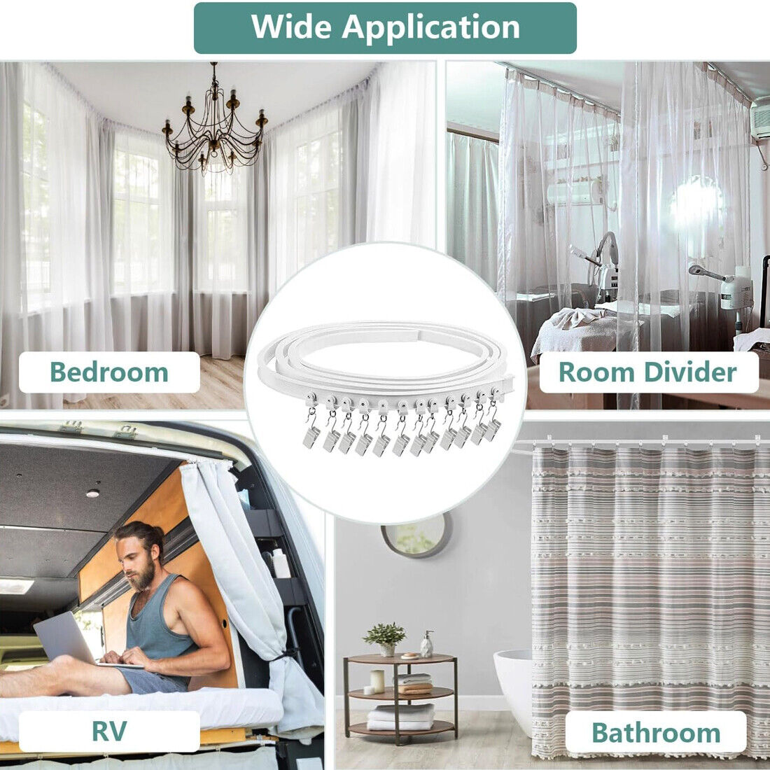 【Multi-Purpose Use】Ceiling curtain track flexible can handle any narrow or irregular space better than curtain poles, like bay windows, rv curtains, trailer, campervan, room divider curtain. Ceiling rail also ideal for bed curtains from ceiling, shower curtains, curtains or compartments, maximize your space and give you instant privacy.