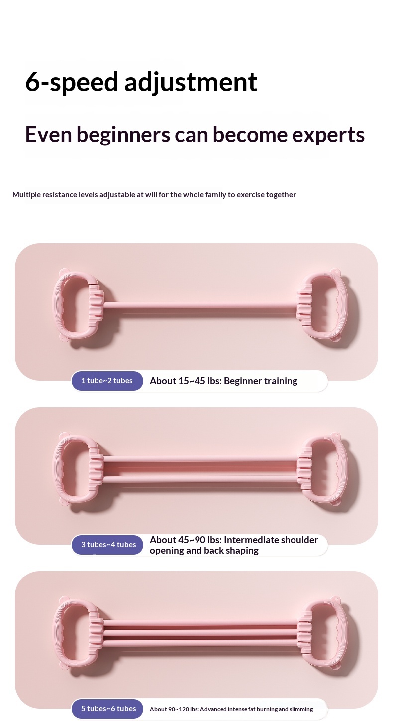 Specification:Mu Xia powder [15-45 pounds] Triple resistance/cat ear non-slip handle/natural soft glue does not break, rock pink [advanced 15-90 pounds] six times adjustable/upgraded cat ear non-slip handle/long pull without breaking, fumigating purple [advanced 15-90 lbs] six times adjustable/upgraded cat ear non-slip handle/long pull without breaking, sea Sky Blue [advanced 15-90 pounds]