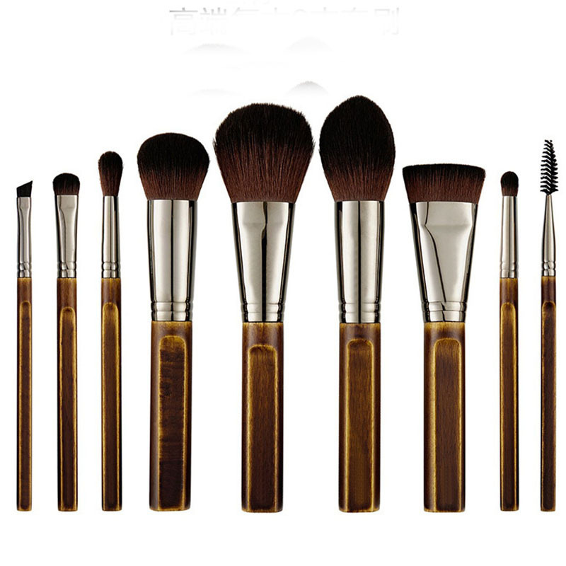New 9-Piece Makeup Set Brush Complete Set Of Retro Wooden Handle Makeup Utensils