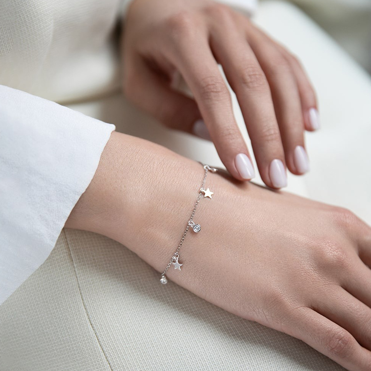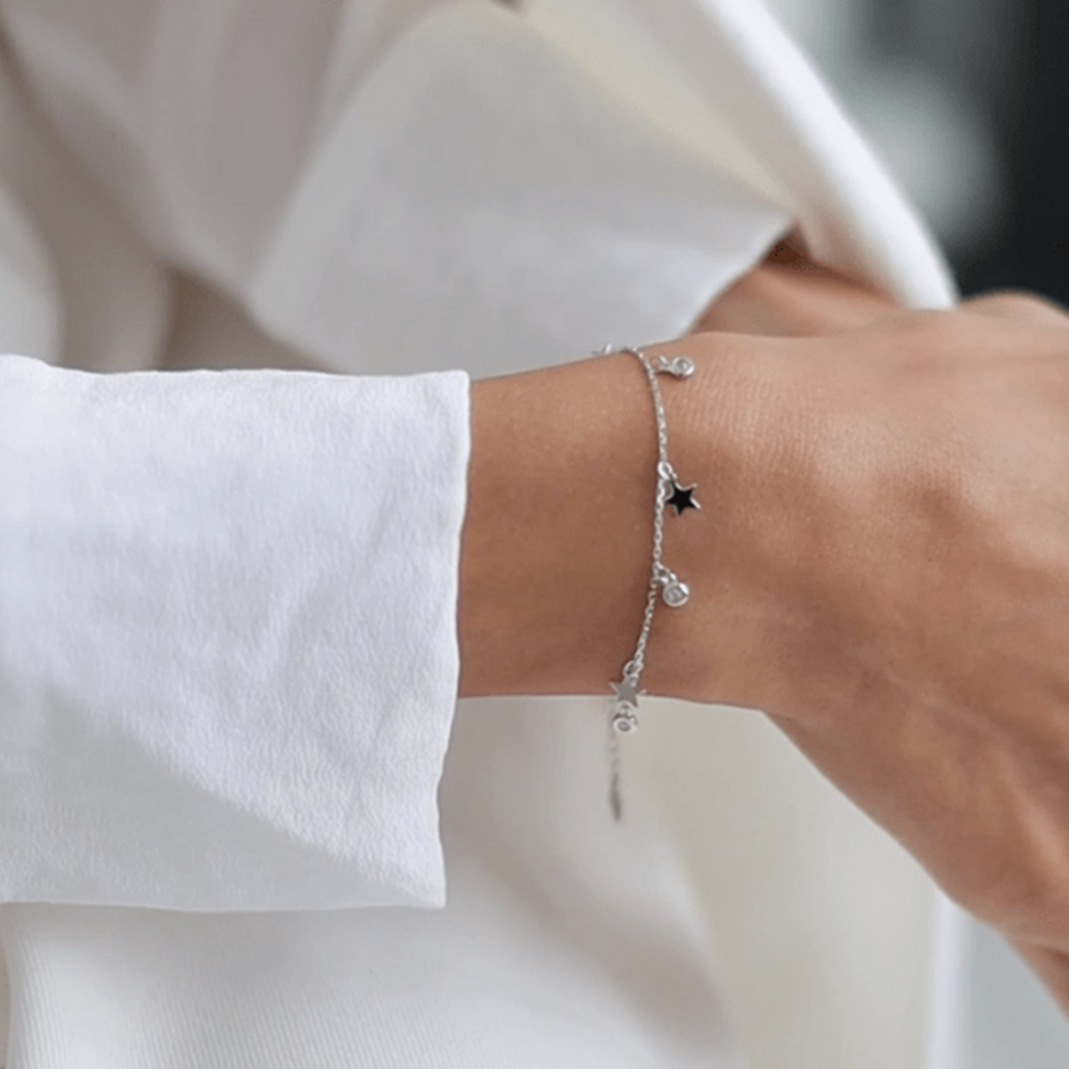 Product information:Color: Platinum—Bracelet Style: Women’s Material: 925 Silver Design: Star-shaped Trendy Element: Five-pointed star