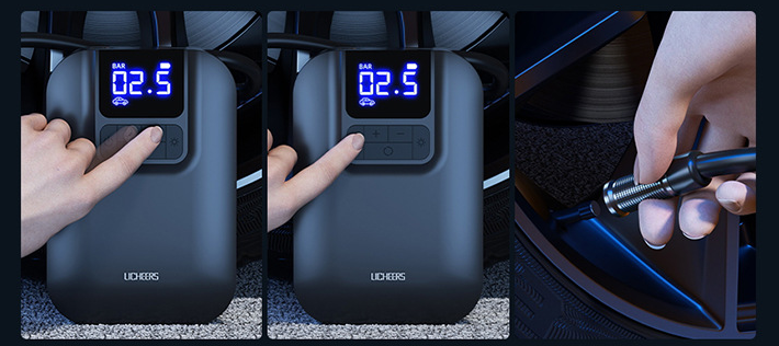 Additional functions: tire pressure monitoring, inflation, lighting, automatic charging and stopping, LED screen lights, and mouth