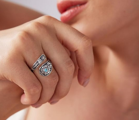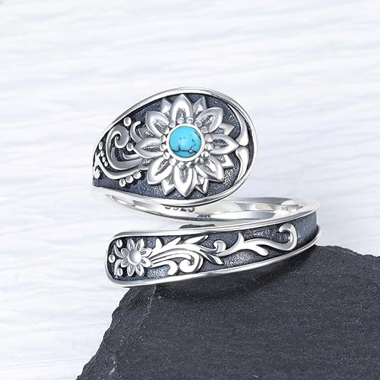 New Accessories European And American Bohemian Retro Sunflower Turquoise Lady's Flower Adjustable Ring