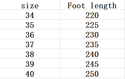 Size: 34, 35, 36, 37, 38, 39, 40