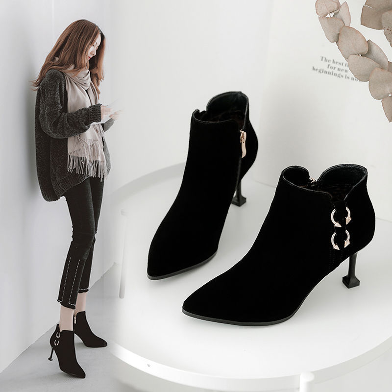 New All-Match Stiletto Cat With Martin Boots High Heel Boots