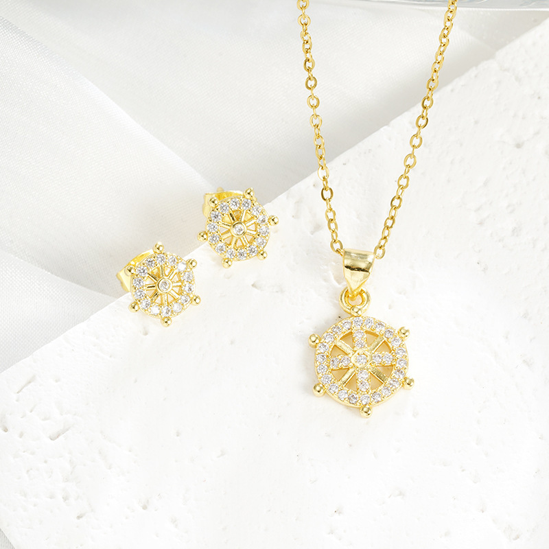 Color: X3094 rudder necklace-white diamond, X3095 rudder necklace-color crystal, E2796 rudder stud earrings-white diamond, E2797 rudder stud earrings-color Crystal