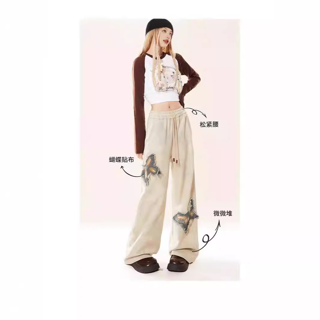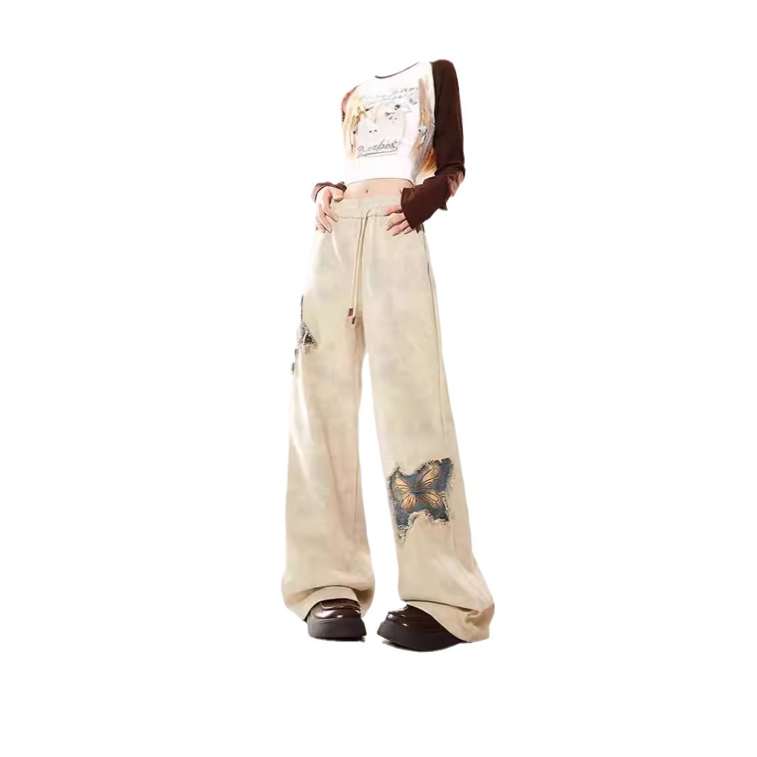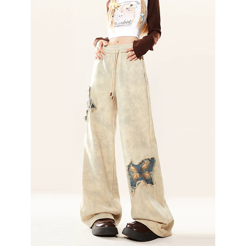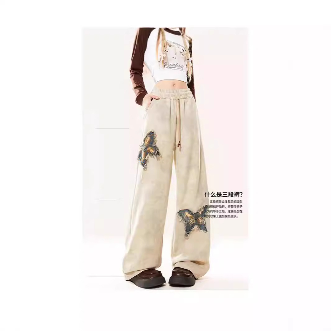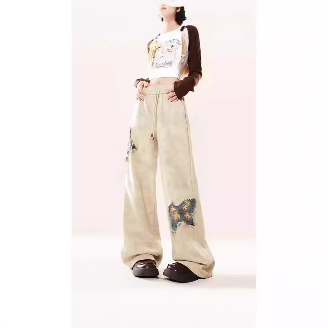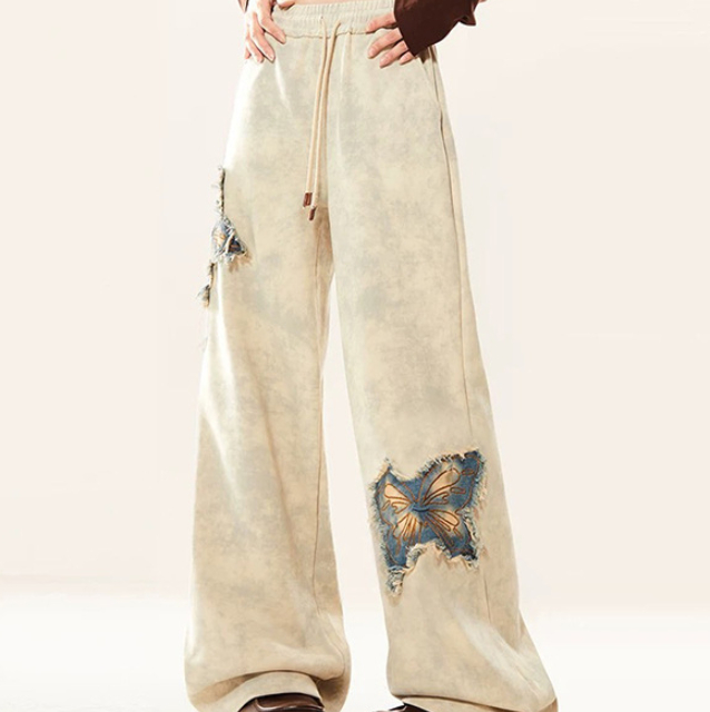 New American Butterfly Raw Embroidery Wide Leg Trousers For Women