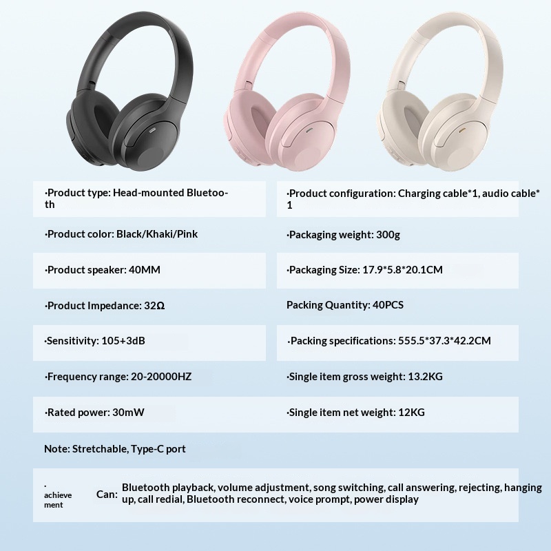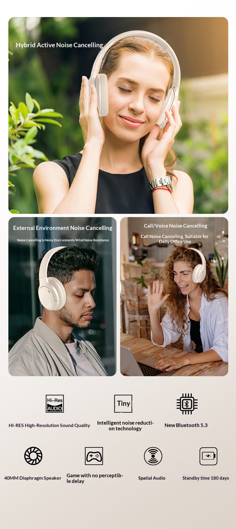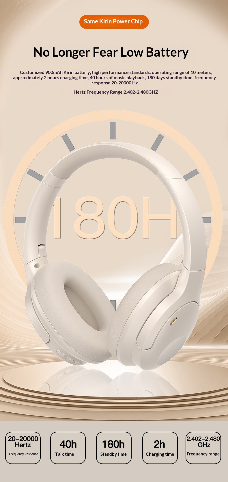 Features: Noise cancellation, ultra-long battery life, call functionality, supports music playback