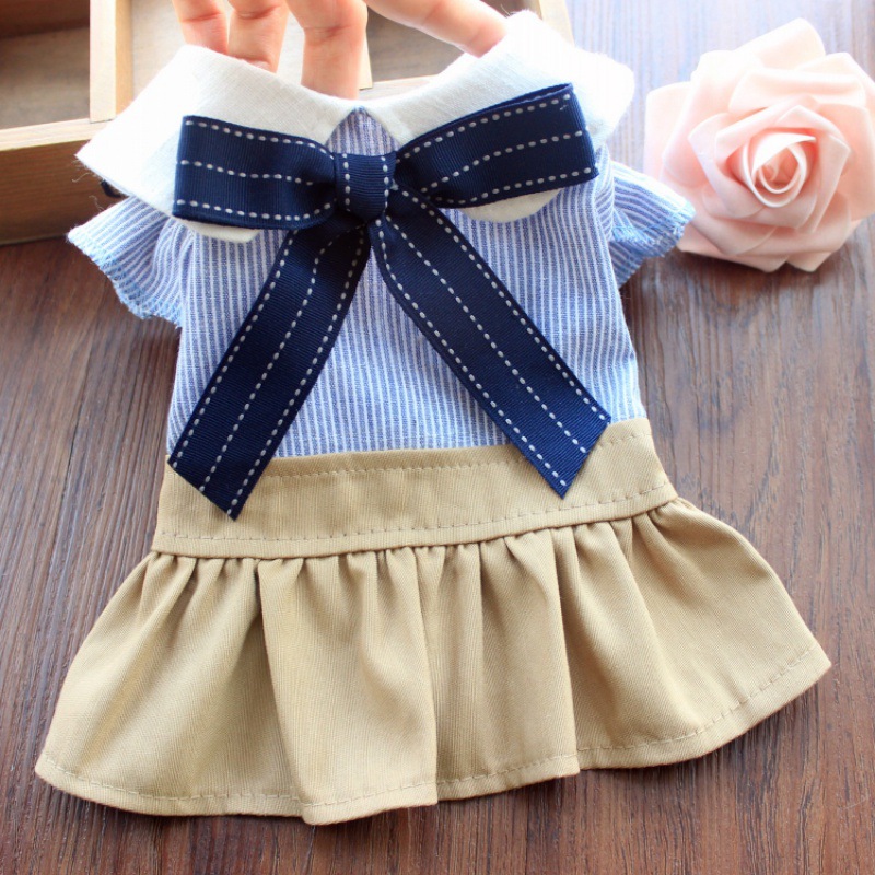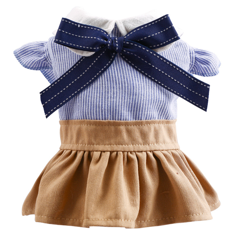 New Arrival Pet Dog Clothes Cute Sweet Teddy Bichon Blue Bow Student Skirt
