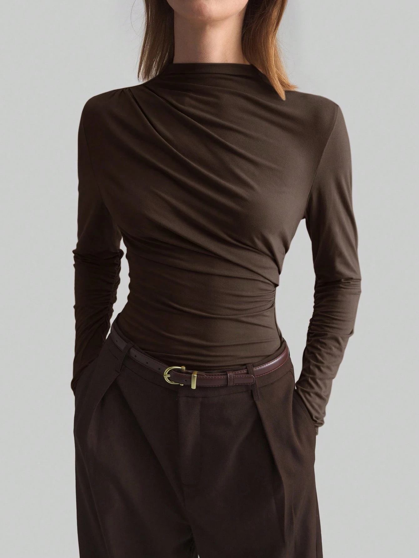 New Asymmetrical Mock-neck Slim-fit Base Top For Women