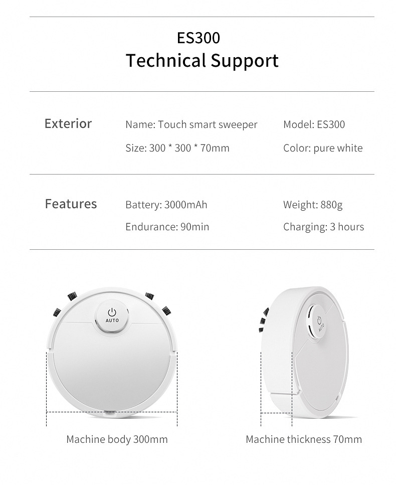 Product function: One-click start, absorb dust hair, cigarette butts, melon seed shell, automatically change direction, etc., built-in 3000 mAh lithium battery.