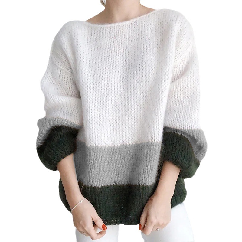 New Autumn And Winter Temperament Commute Color Matching Knitted Sea Furry Sweater