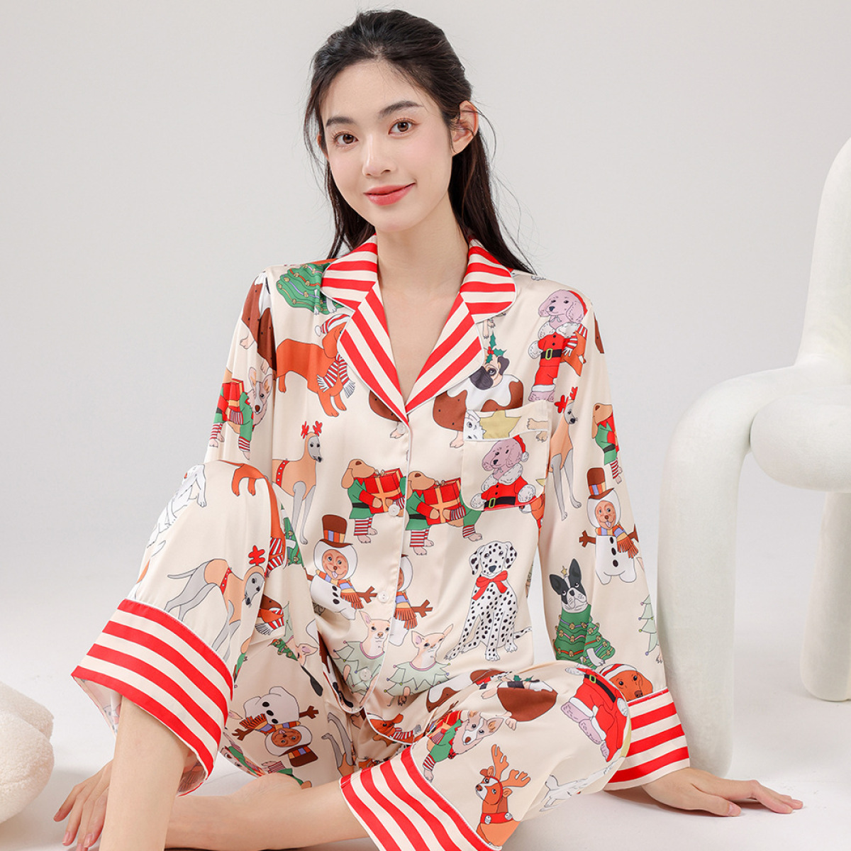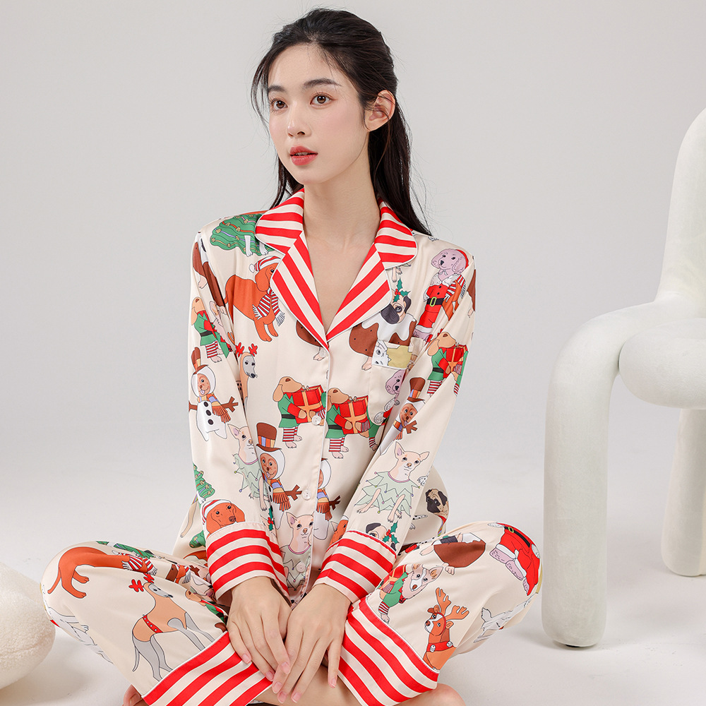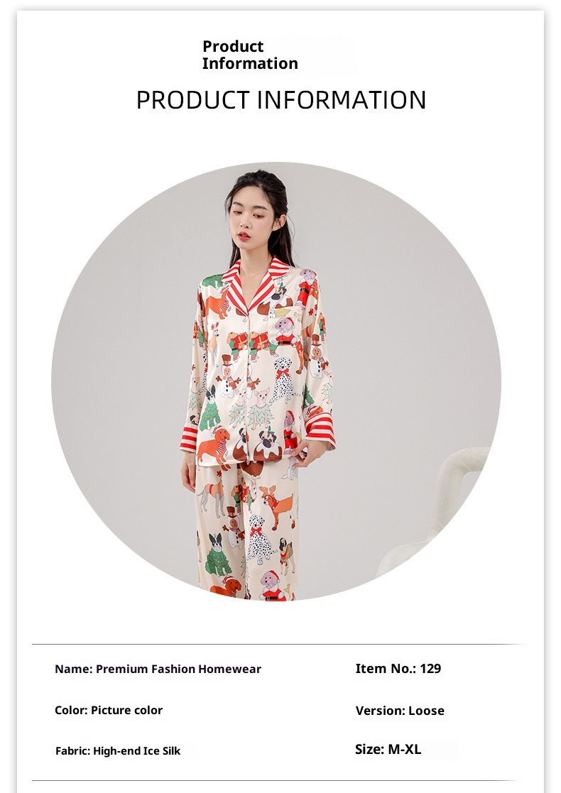New Autumn Pajamas Women's Ice Silk Puppy Homewear