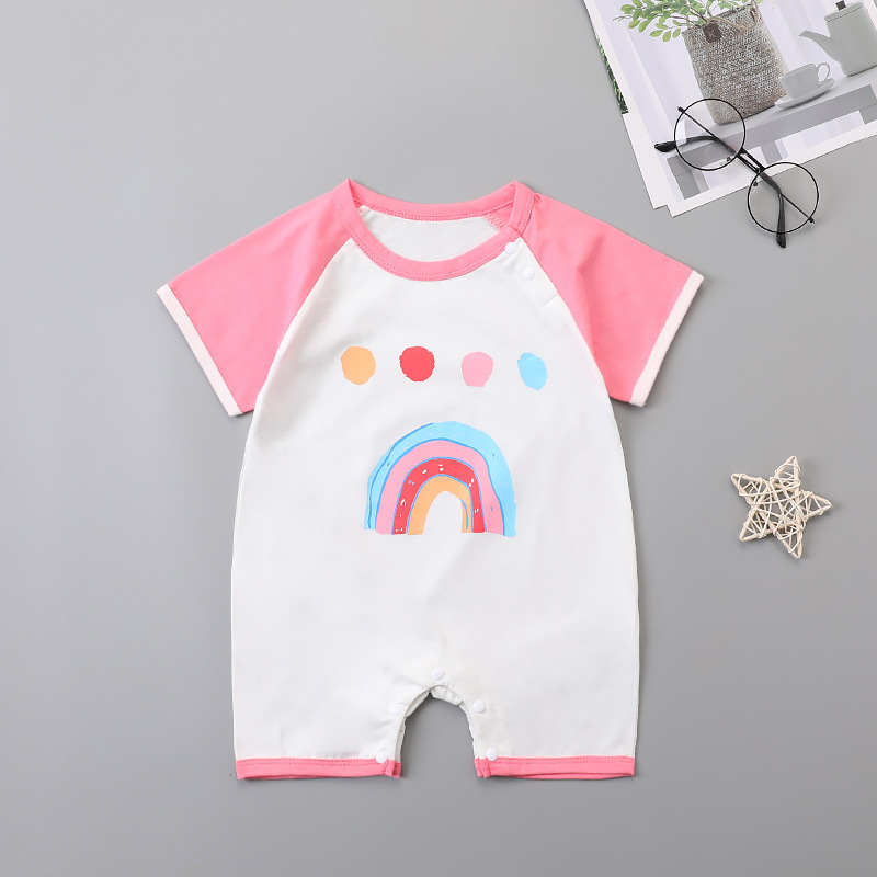 Color: 1 raglan half sleeve romper strawberry, 2 raglan half sleeve romper radish, 3 raglan half sleeve romper Avocado, 4 raglan half sleeve romper, pineapple, 5 raglan half sleeve romper, Yali, 6 raglan half sleeve romper Rainbow