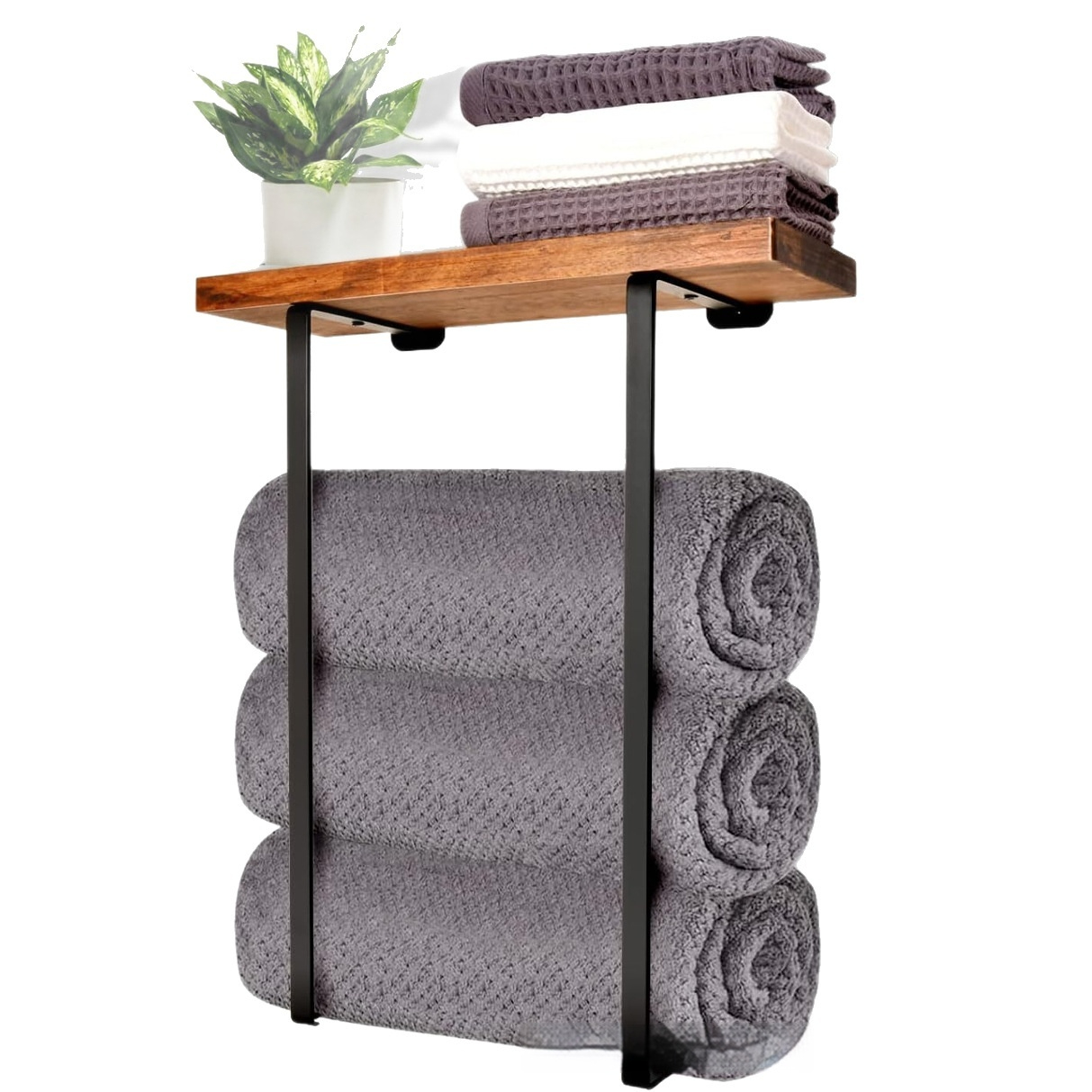 This modern minimalist towel rack combines high-quality wood and metal construction, designed for wall mounting in bathrooms or washrooms. It offers a sturdy single-tier storage space for bath towels with a weight capacity of up to 10 kg, blending practicality and aesthetic appeal.