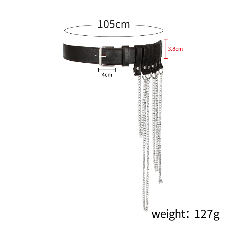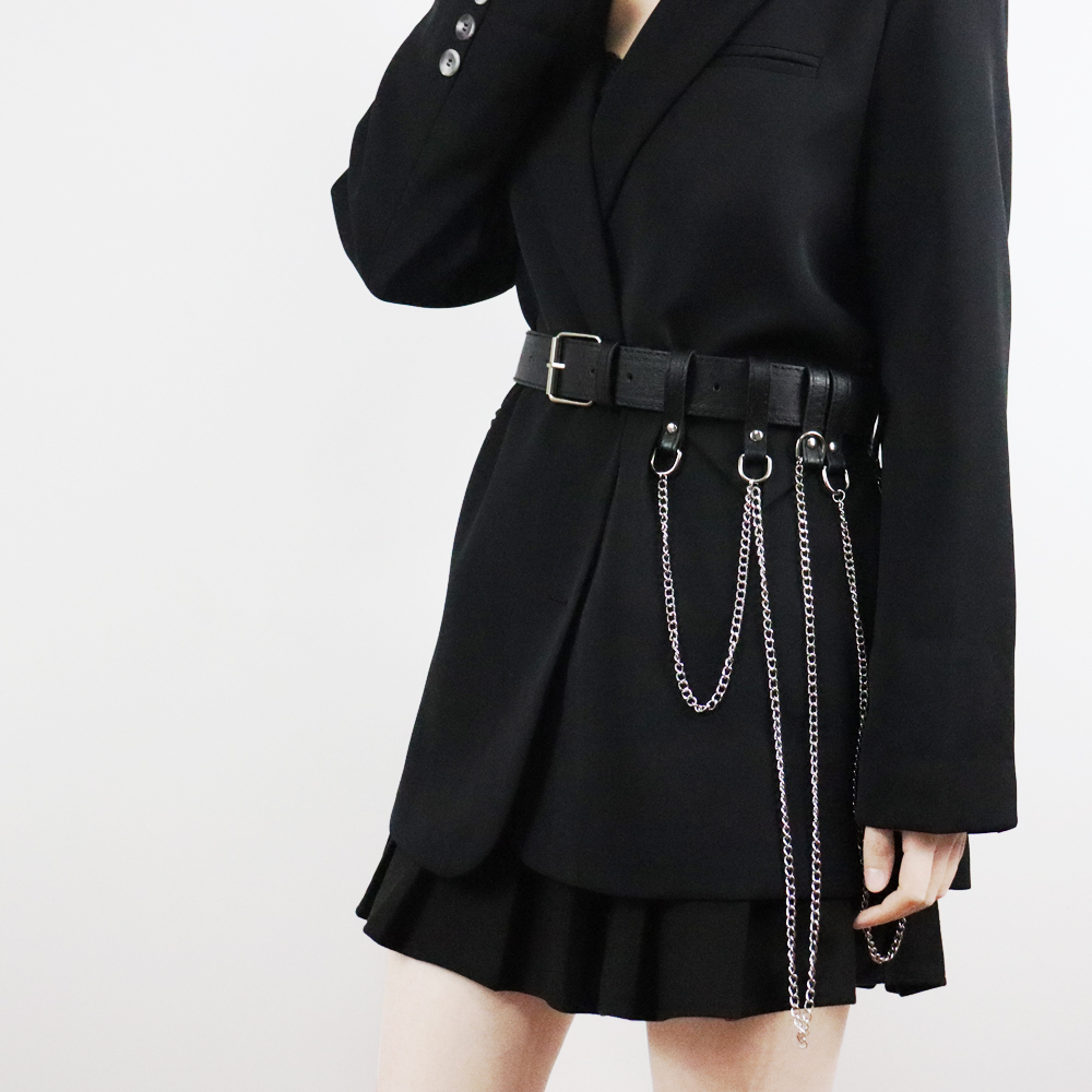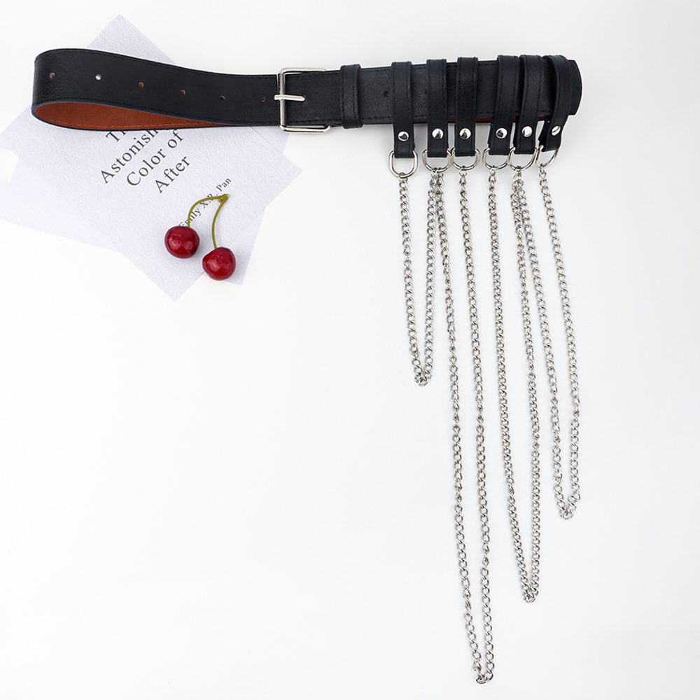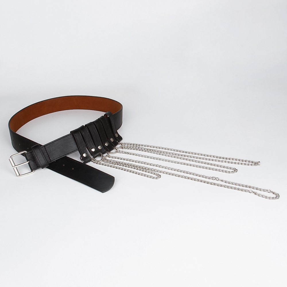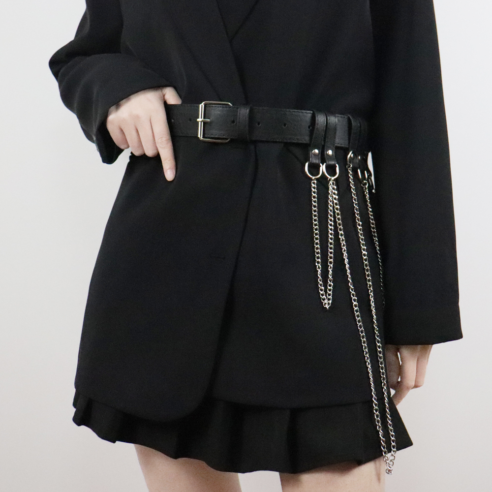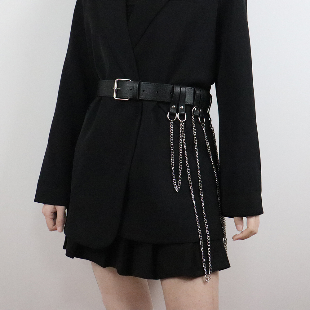 New belt all-match men and women chain decoration punk cool handsome girl with small suit waist black nightclub style