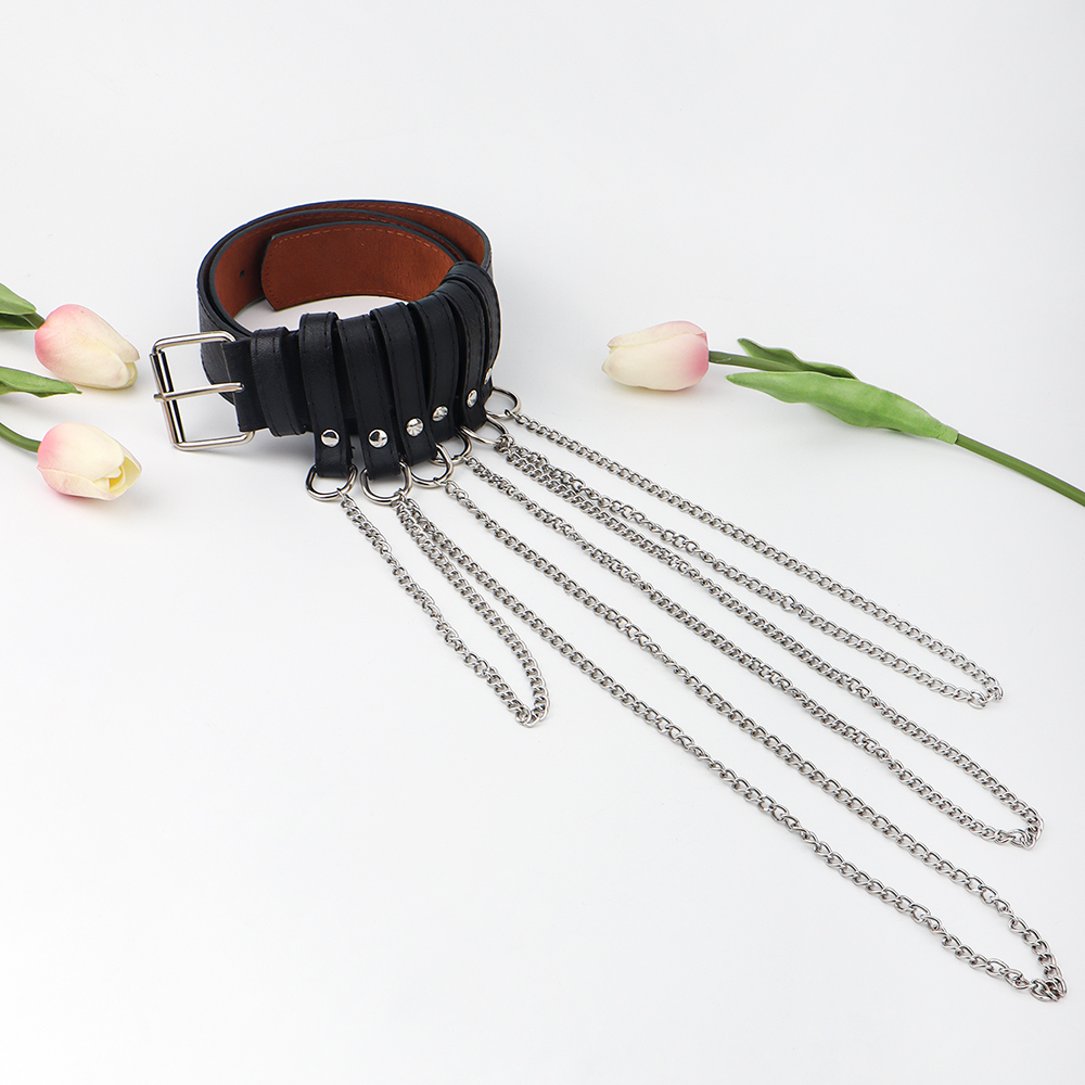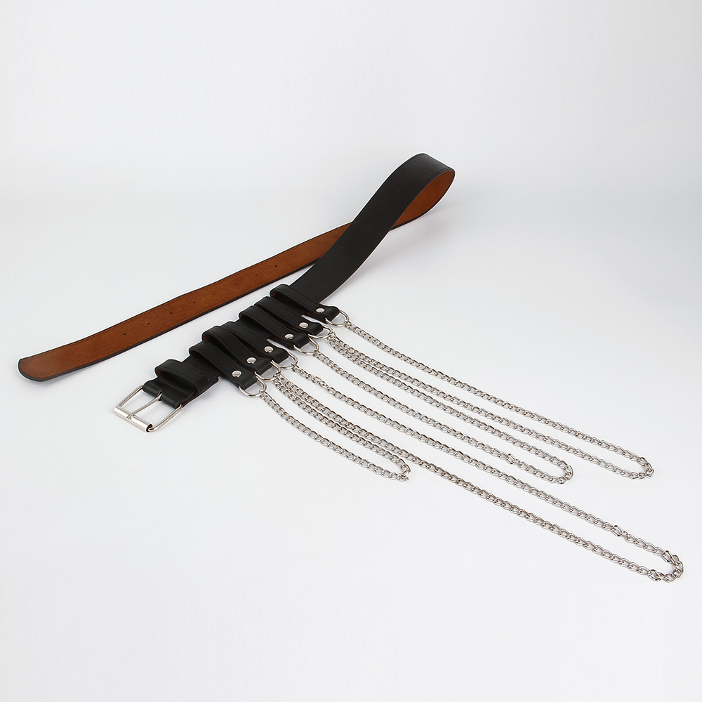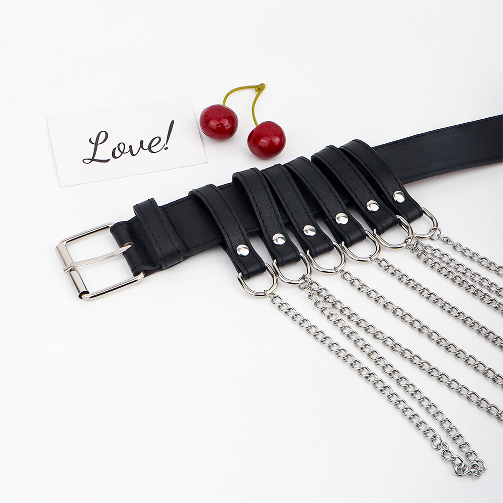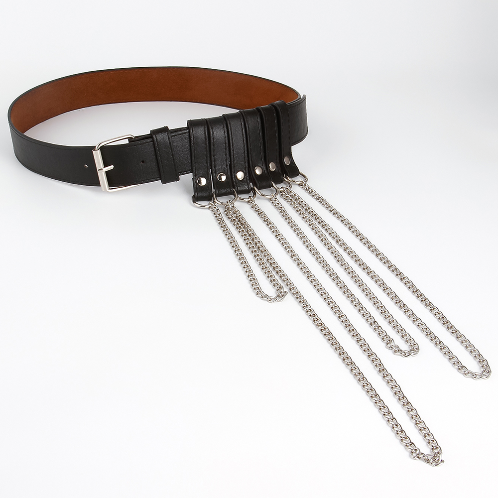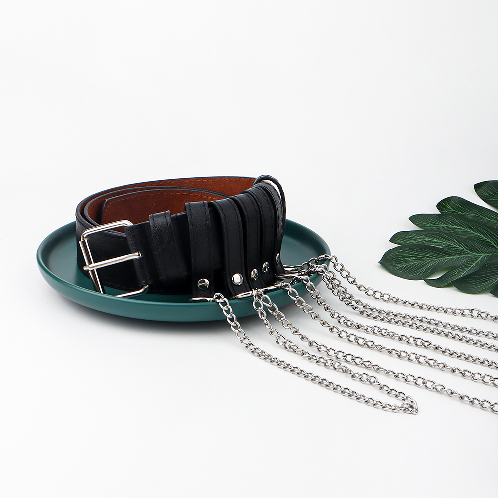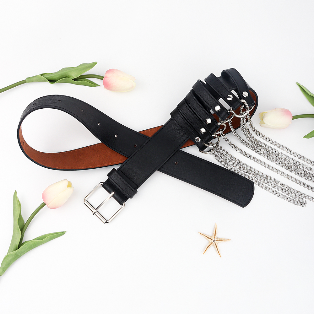 New belt all-match men and women chain decoration punk cool handsome girl with small suit waist black nightclub style