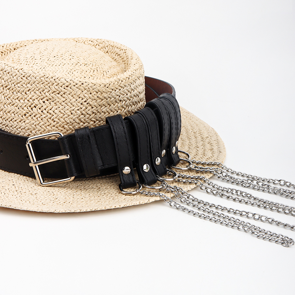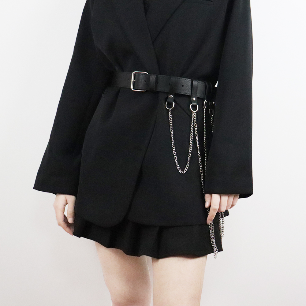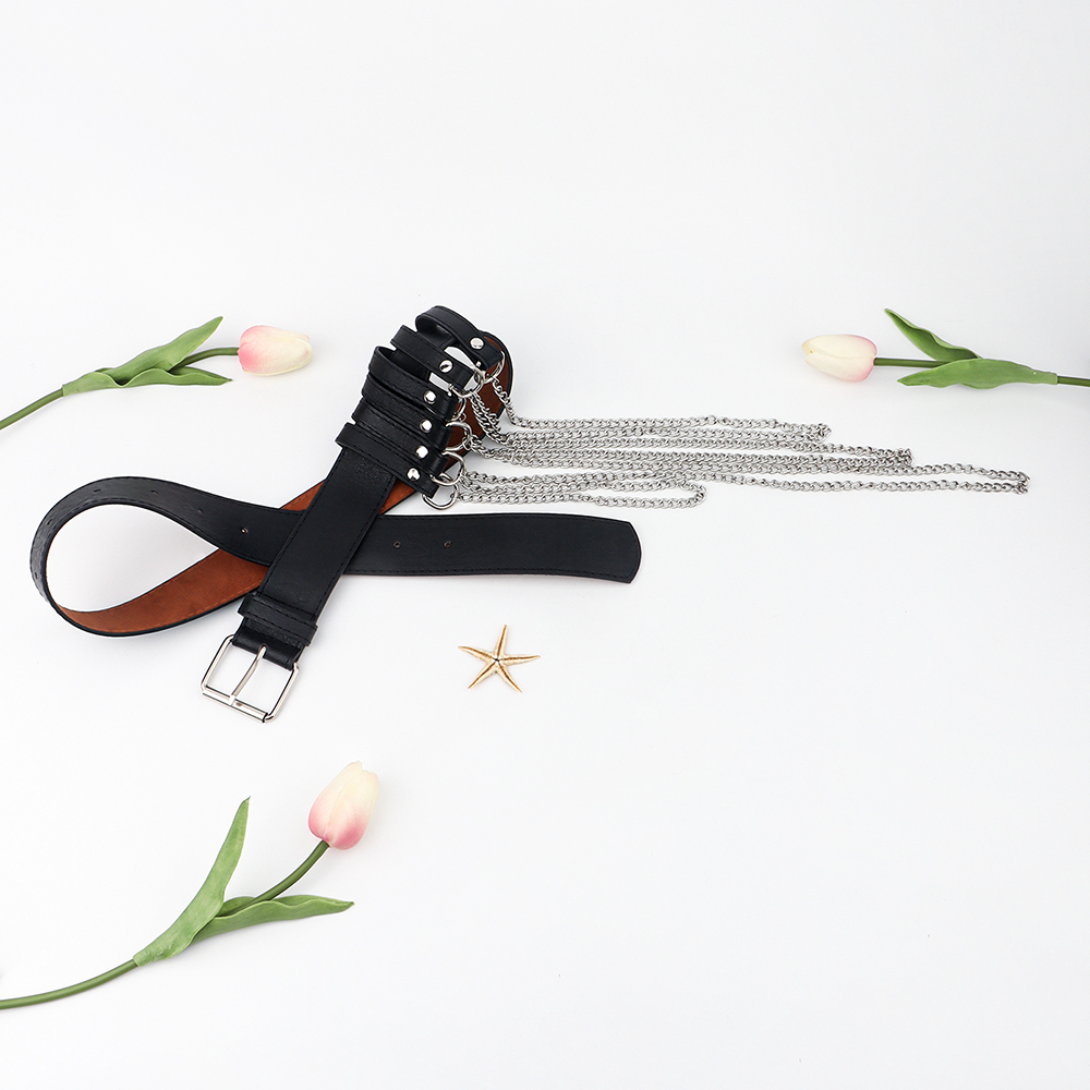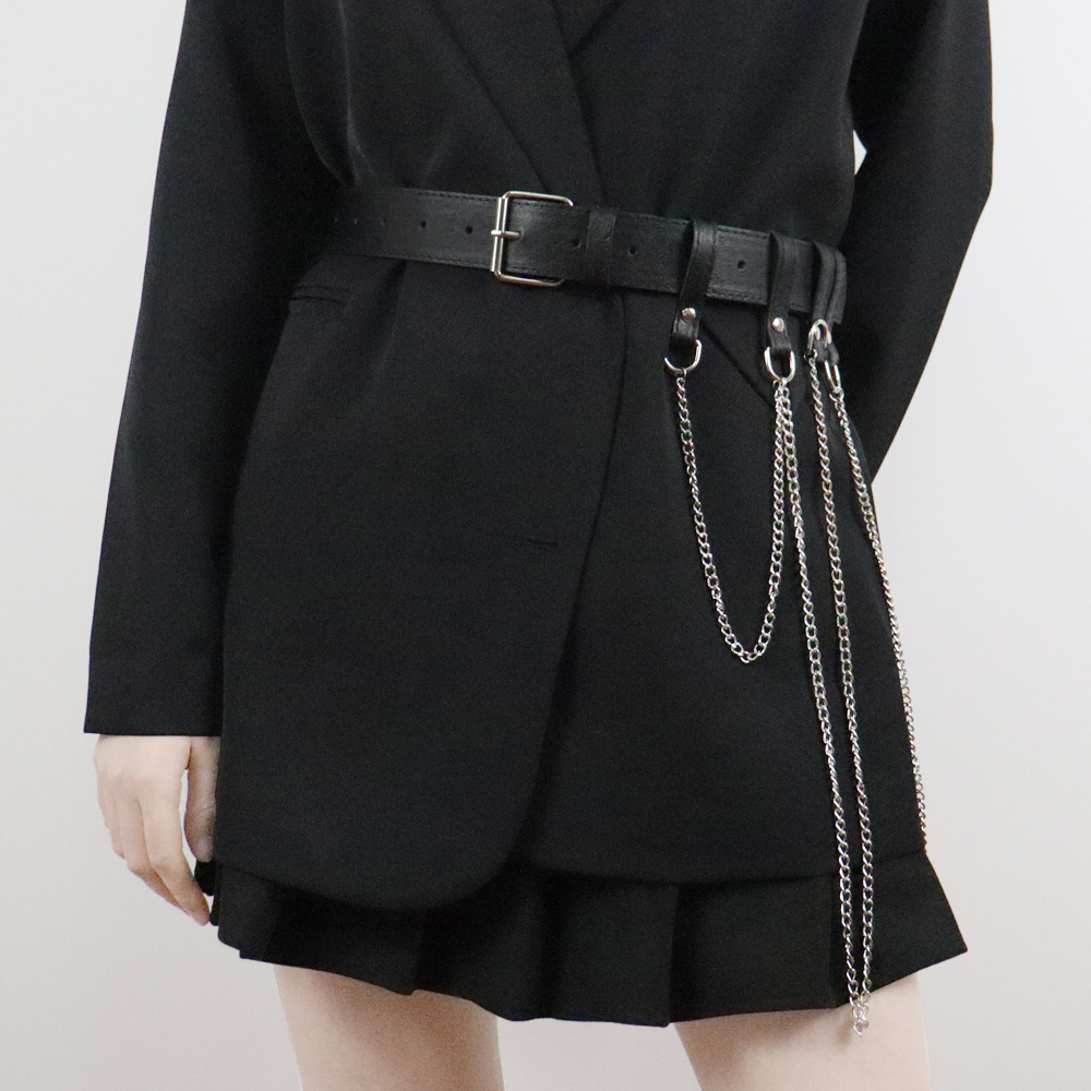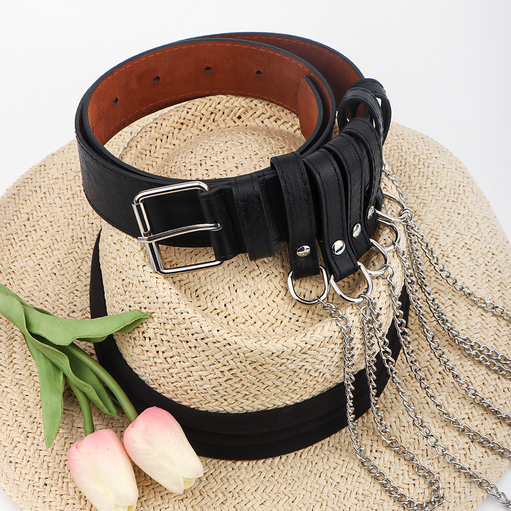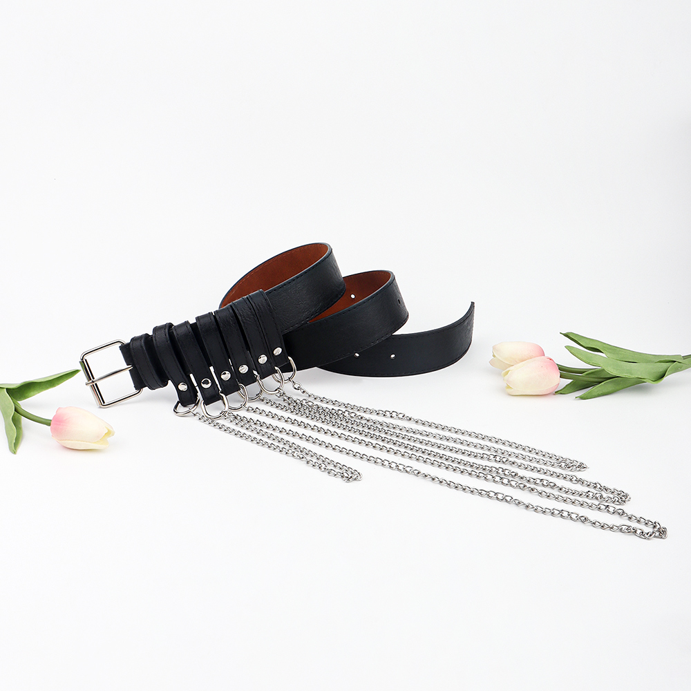 New belt all-match men and women chain decoration punk cool handsome girl with small suit waist black nightclub style