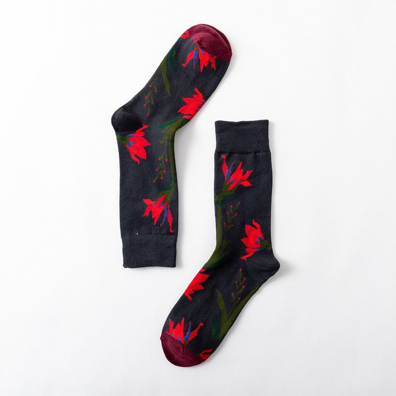 New Big Flower Plant Series Socks Cotton Couple Socks