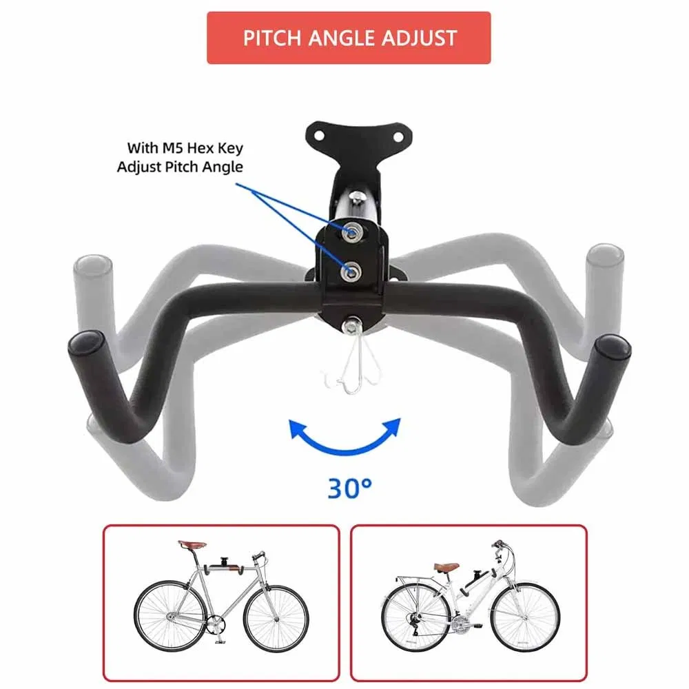 Adjustable Angle: Hang your bike horizontally for easy storage and access. The hook angle is adjustable for optimal bike frame support.