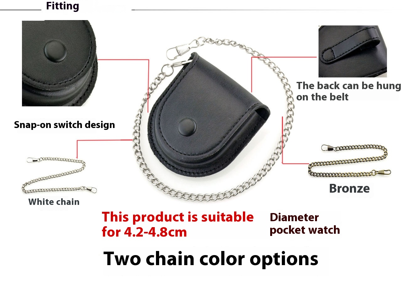 Color: Black Clock cover with antique chain, Black Clock cover with white chain, Brown clock cover white chain, Brown clock cover bronze chain