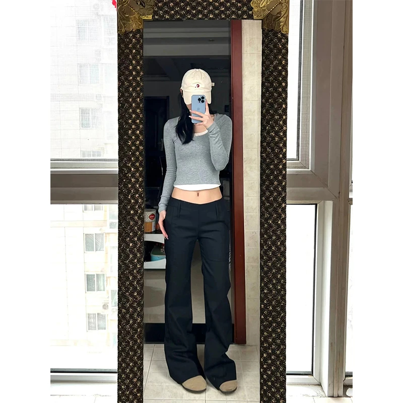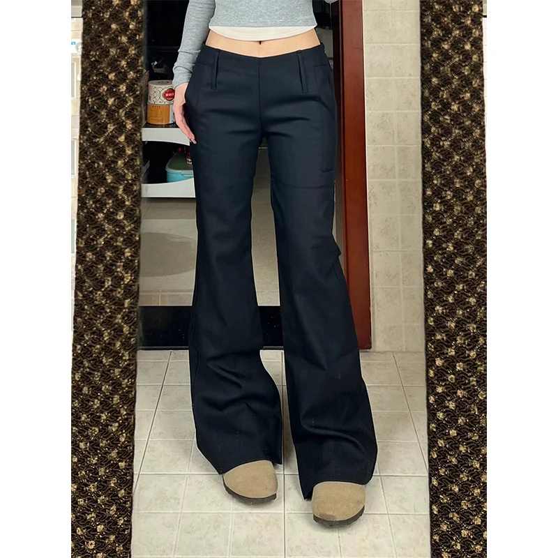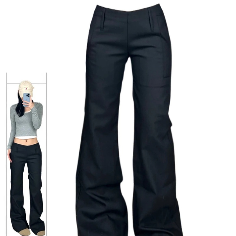 New Black Low Waist Slightly Flared Suit Pants Women's Slim Fit Drape