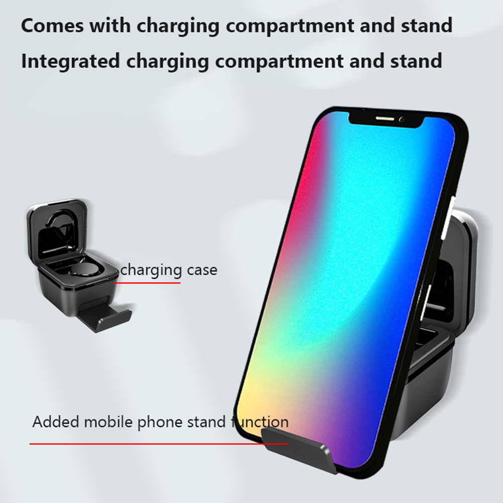 1. Long-lasting battery life: Comes with a 200mAh charging compartment. Small body, large capacity, long battery life. Charge for two hours and work continuously for about 48 hours. The charging compartment and the bracket are integrated, and the mobile phone bracket function is added, which can place the mobile phone.