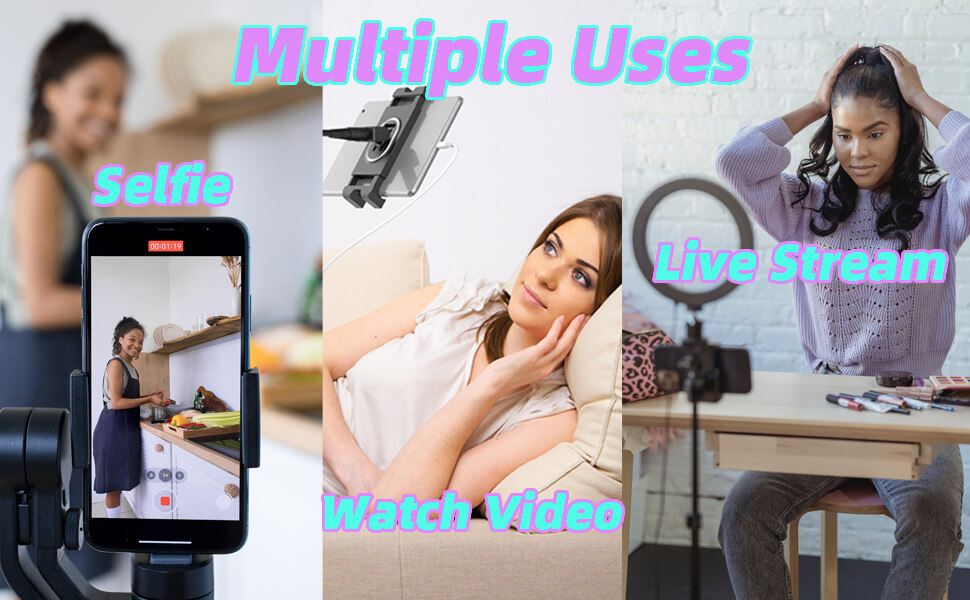 3. Remote control, use in many occasions: Remote viewing of videos/chasing dramas, Selfie/recording without trouble. Ring control artifact, say goodbye to the trouble of arm soreness, suitable for full body photo / multi-person co-production, 10 meters remote control, one-click.