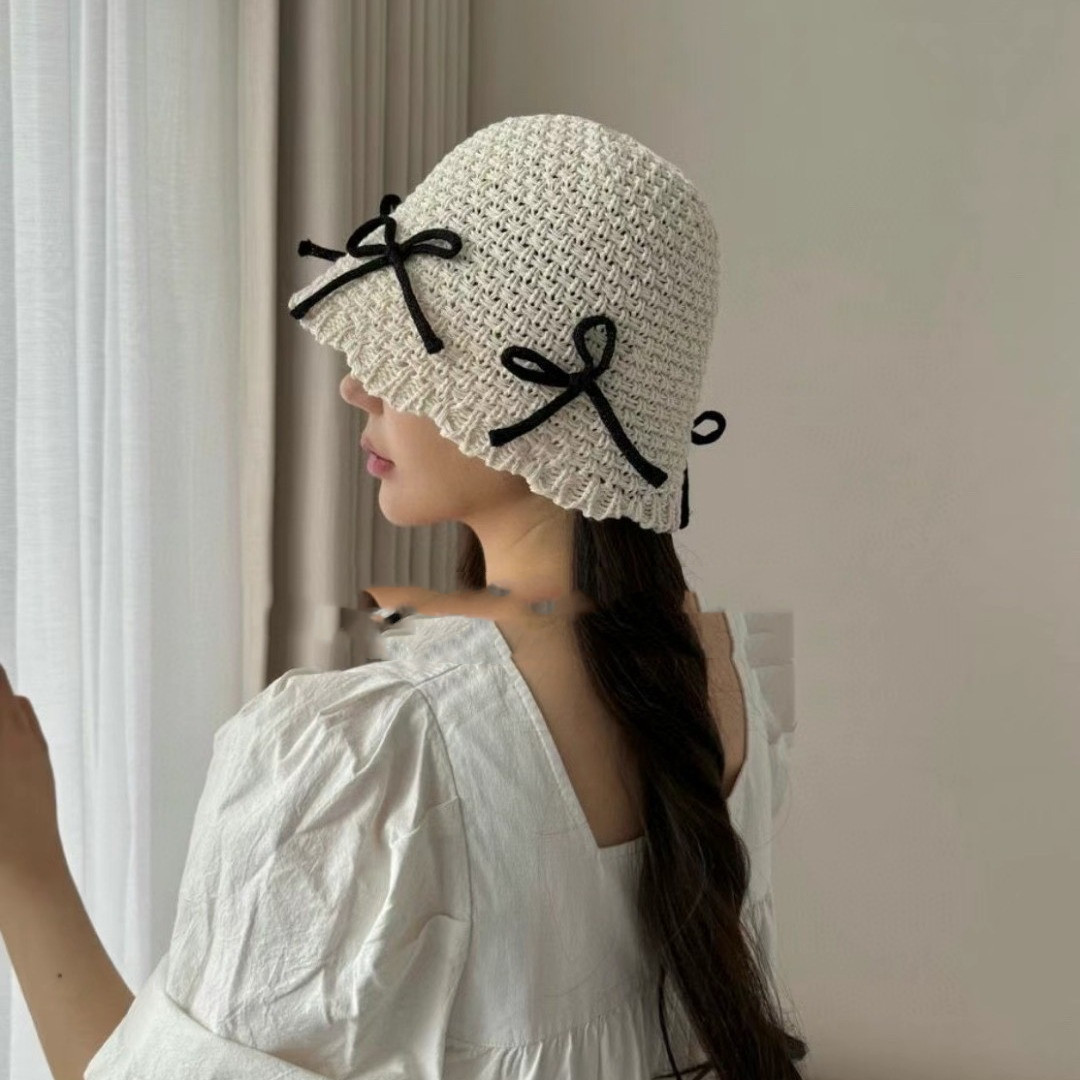 Color: black, white, beige, khaki, White (black bow)