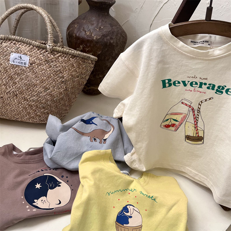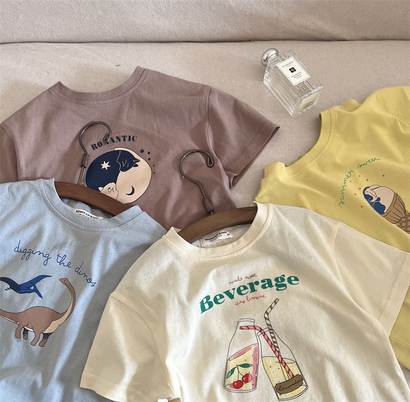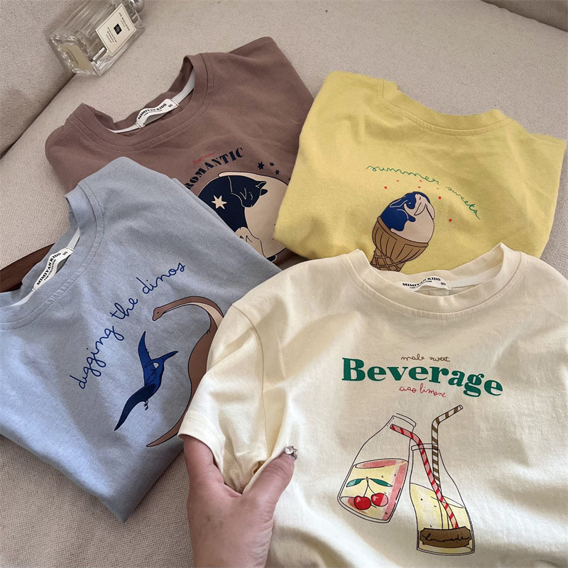 New Boys And Girls Round Neck Cartoon Printed T-shirt